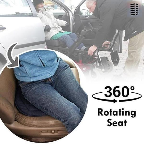 A almofada rotativa de assento de carro gira com o corpo quando você entra e sai do carro. Uma ótima ferramenta para quem sofre de **mobilidade reduzida**.