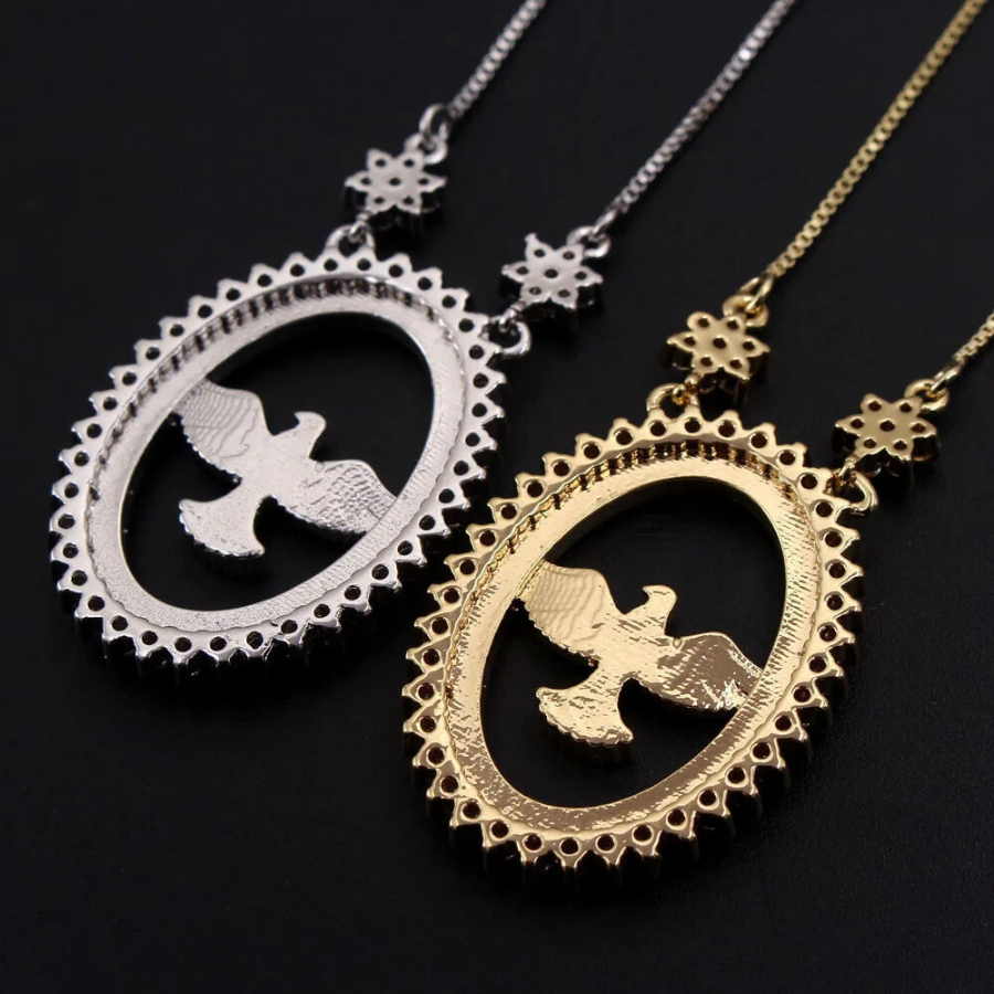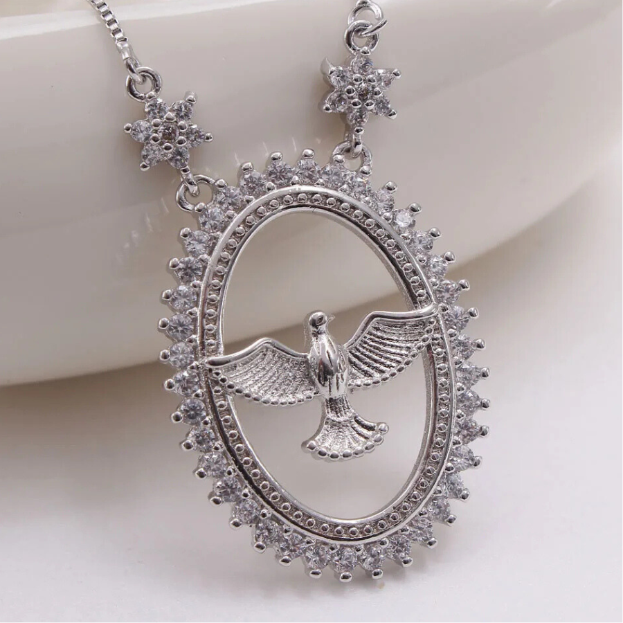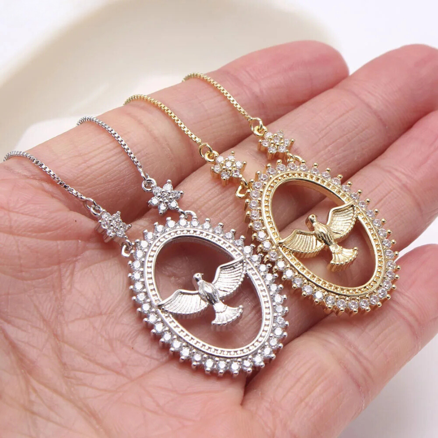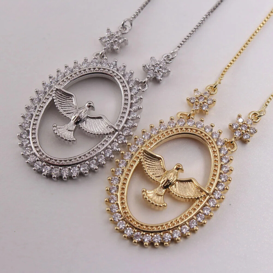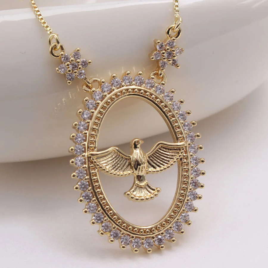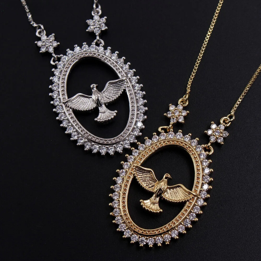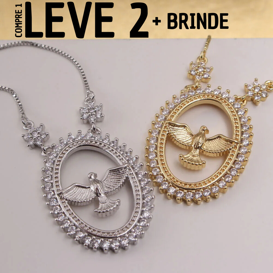 Colar Espirito Santo Cravejado De Cristais e Banhado A Ouro Ou Prata - [Compre 1 Leve 2 + Brinde]