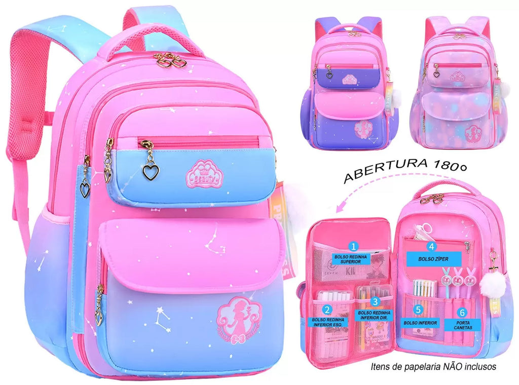Princesa Pink; Mochila Ortopédica Infantil; Leve e Resistente; Design Impermeável; Alta Capacidade de Armazenamento; Compartimento que Abre a 180°; Organização Interna Estratégica; Bolsos Internos Práticos; Disponível em 5 Cores Encantadoras; Tamanhos Variados; Tecido Acolchoado e Respirável; Conforto e Estilo em um Único Produto; Volta às Aulas com Elegância; Mochila para Meninas; Escolha a Sua Favorita; Resistente a Chuva; Praticidade no Dia a Dia Escolar; Mochila de Qualidade; Saúde das Costas em Destaque; Encante-se com a Princesa Pink; Personalize o Estilo da Sua Princesa.