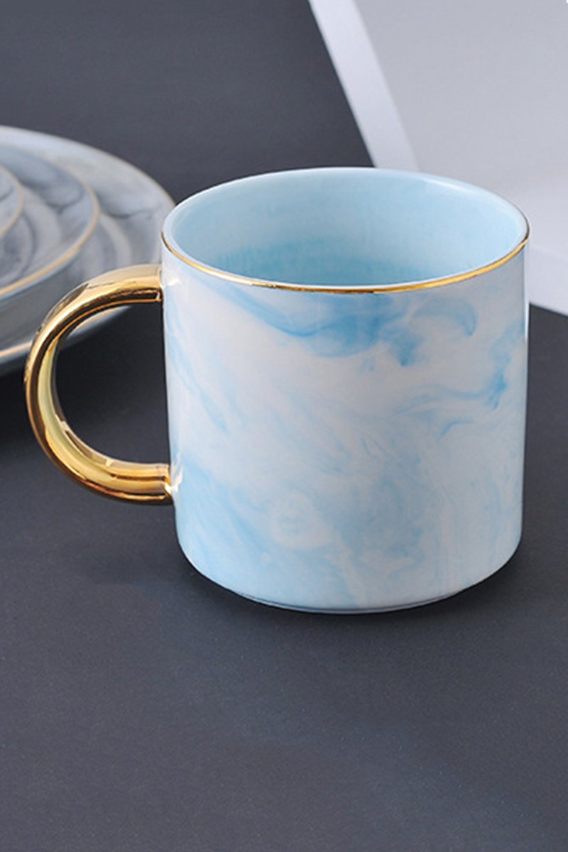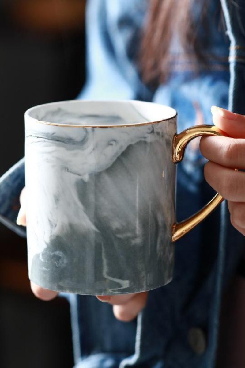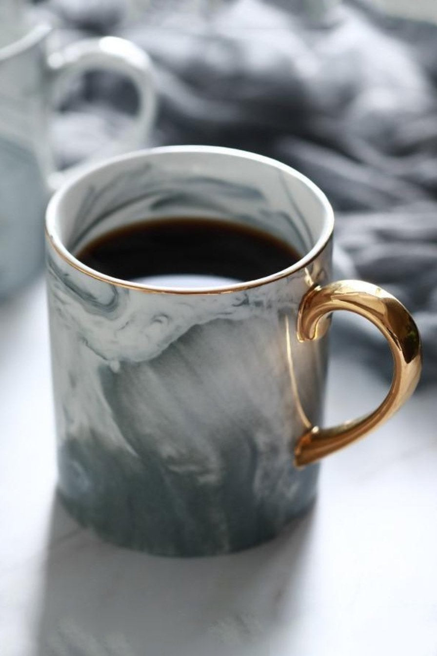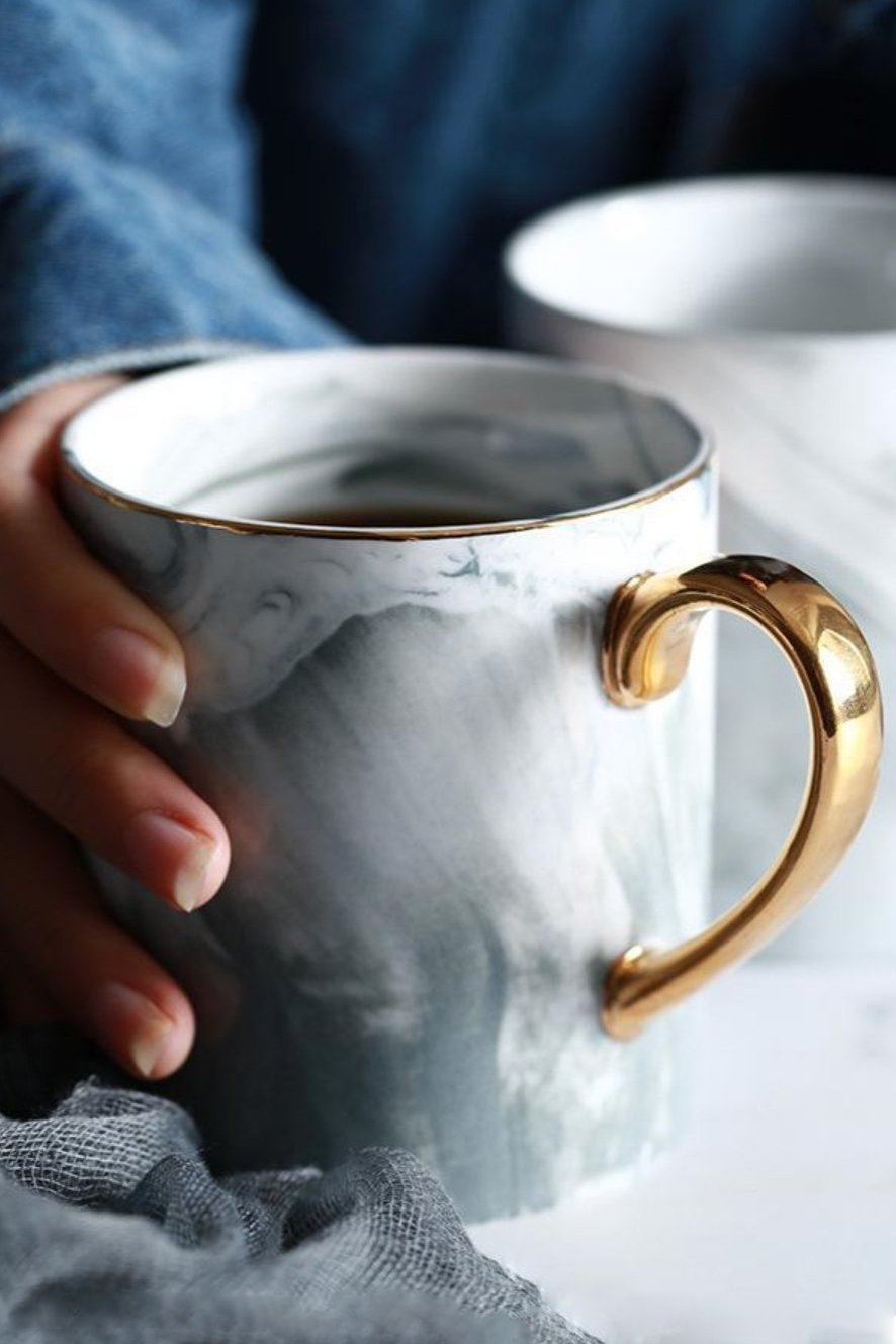 Adicione esta caneca ao seu café da manhã e comece o dia da melhor forma com um café quente na Caneca Gilded. Esta caneca é durável, feita de porcelana e com acabamentos de revestimento de mármore e ouro na alça.