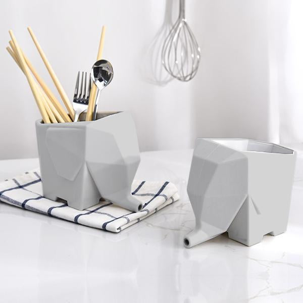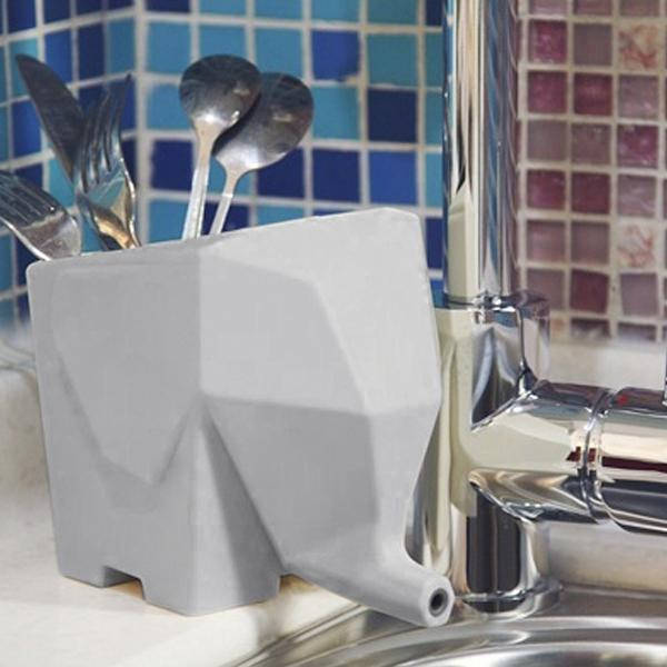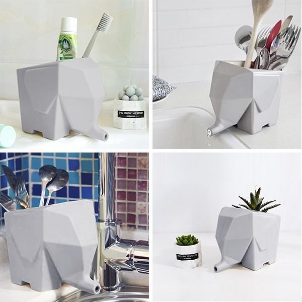 Não tenha mais poças de água irritantes na parte inferior do porta-copos! Este escorredor de água de elefante fofo ajuda a água a correr diretamente para a pia e não em sua superfície. Ótimo como um suporte de talheres ou um porta-escovas de dentes!