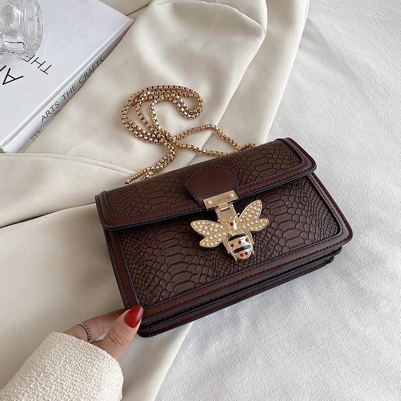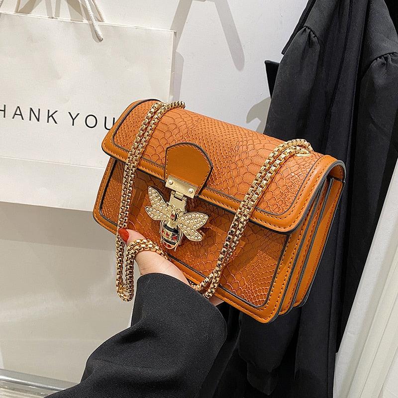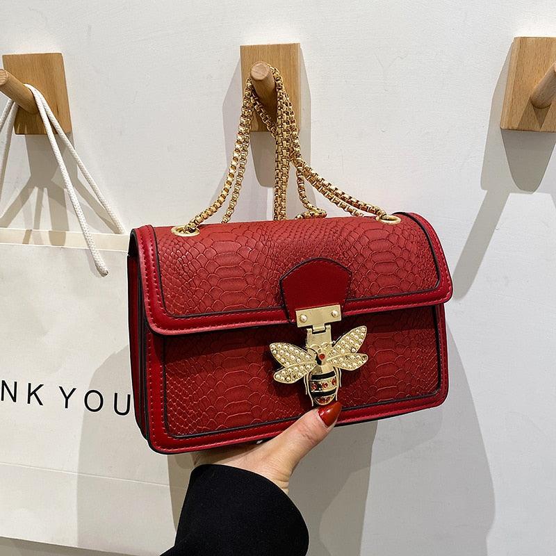 Bolsa LUXURY BEE em Couro PU Pele de Cobra - Bolsa Feminina De Ombro HandBag