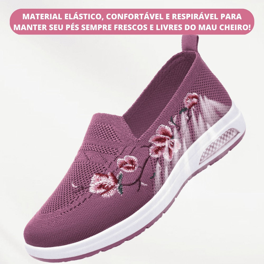 Tênis Ortopédico Feminino Com Amortecimento Sport Flowers - Lançamento 2023