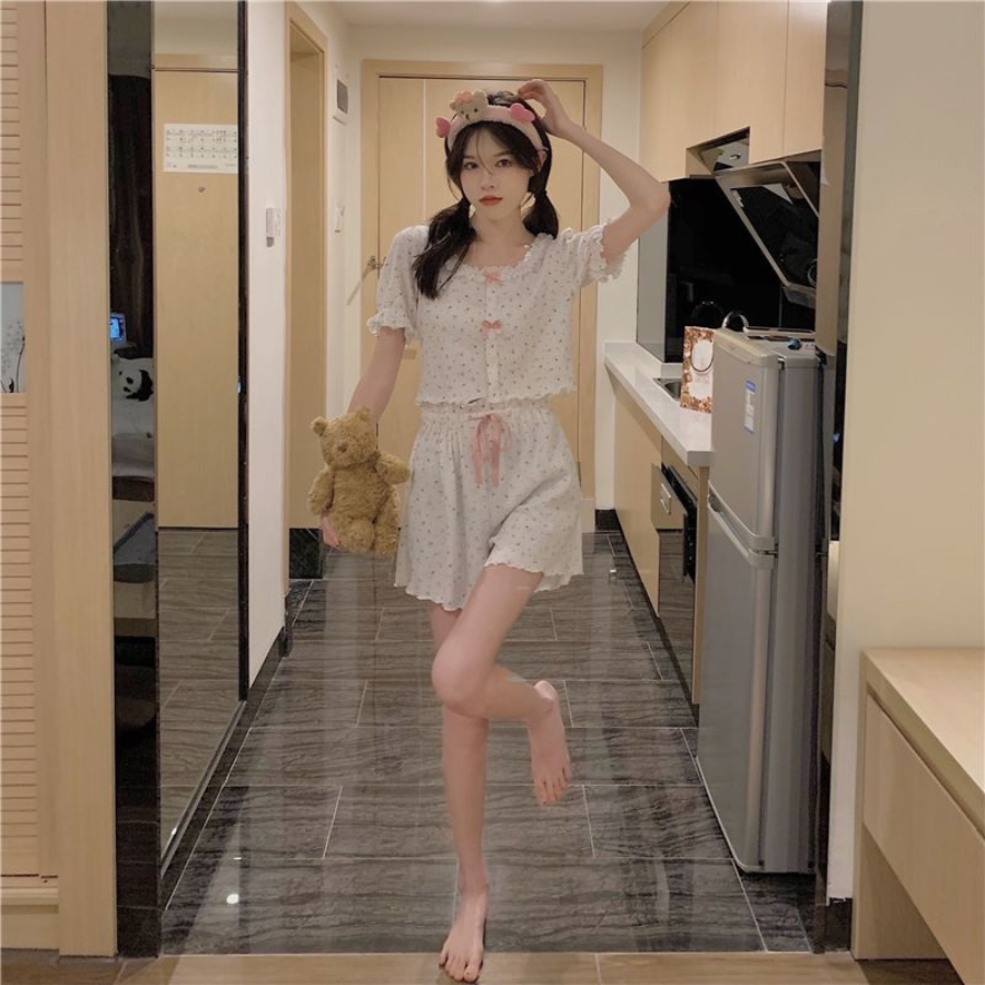 Conteúdo do pacote: 1x Conjunto de Pijama Feminino Comfort PetalBloom, com Shorts e Camisa Curta.