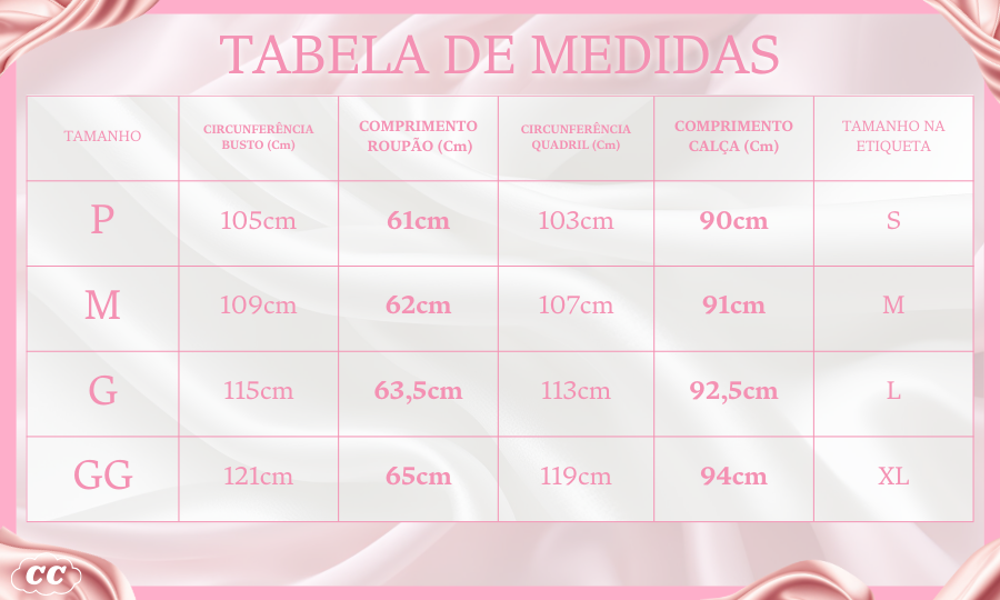 Conteúdo do pacote: 1x Conjunto de Pijama Feminino EleganceNights, com Calça e Roupão.