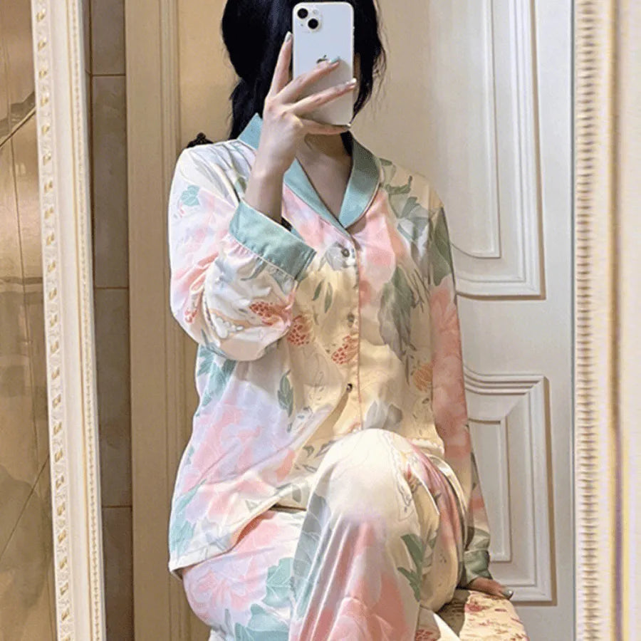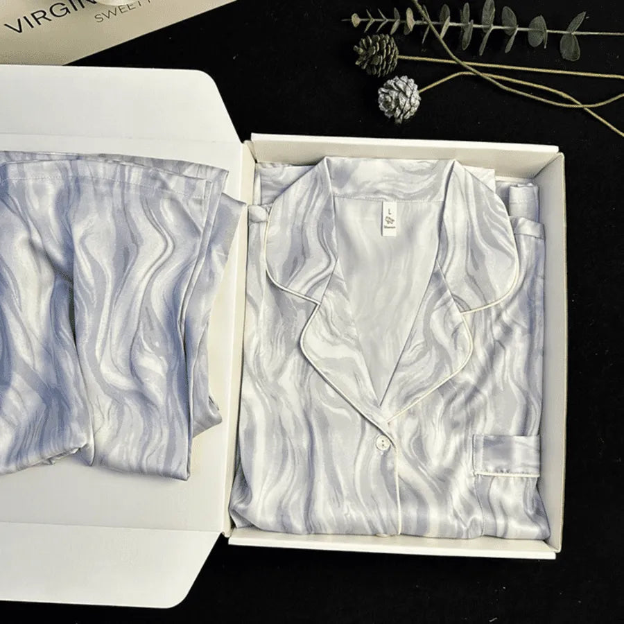 Pijama Feminino Serenade Conjunto Calça e Camisa Longa Em Seda Gelo Premium | Toque De Seda Confortável