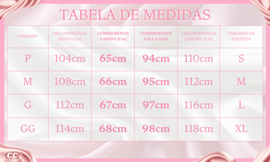 Conteúdo do pacote: 1x Conjunto Feminino Silver Dreams, com Calça e Camisa Longa ou Curta.