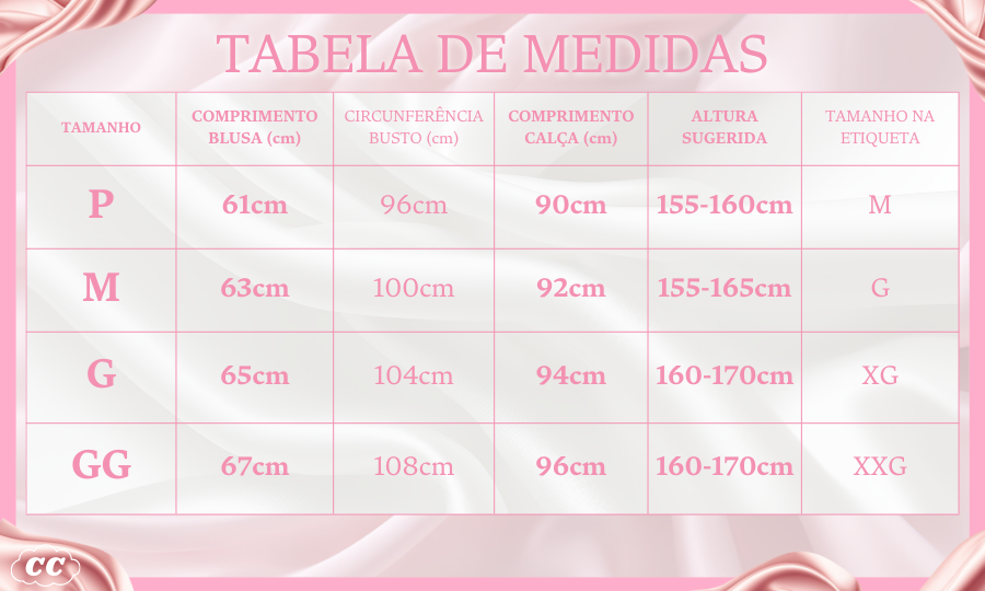 Tamanho: Conforme Tabela de medidas;