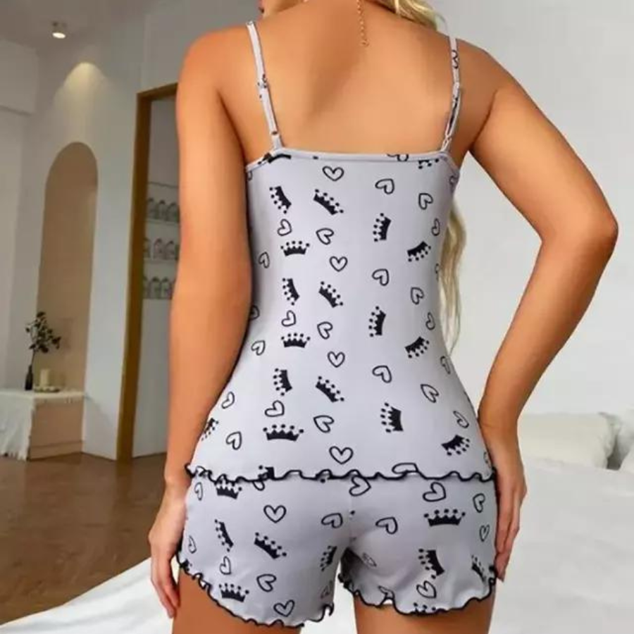 Pijama Feminino Cozy Love - Conjunto BabyDoll e Shorts Fresquinho Toque De Seda | Tecido Super Macio e Confortável