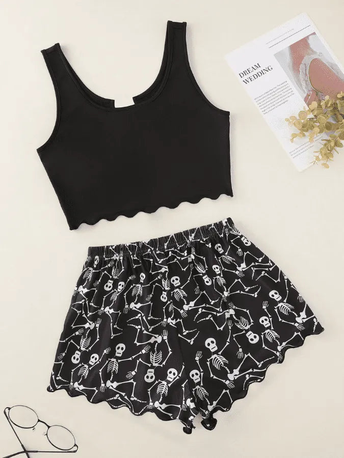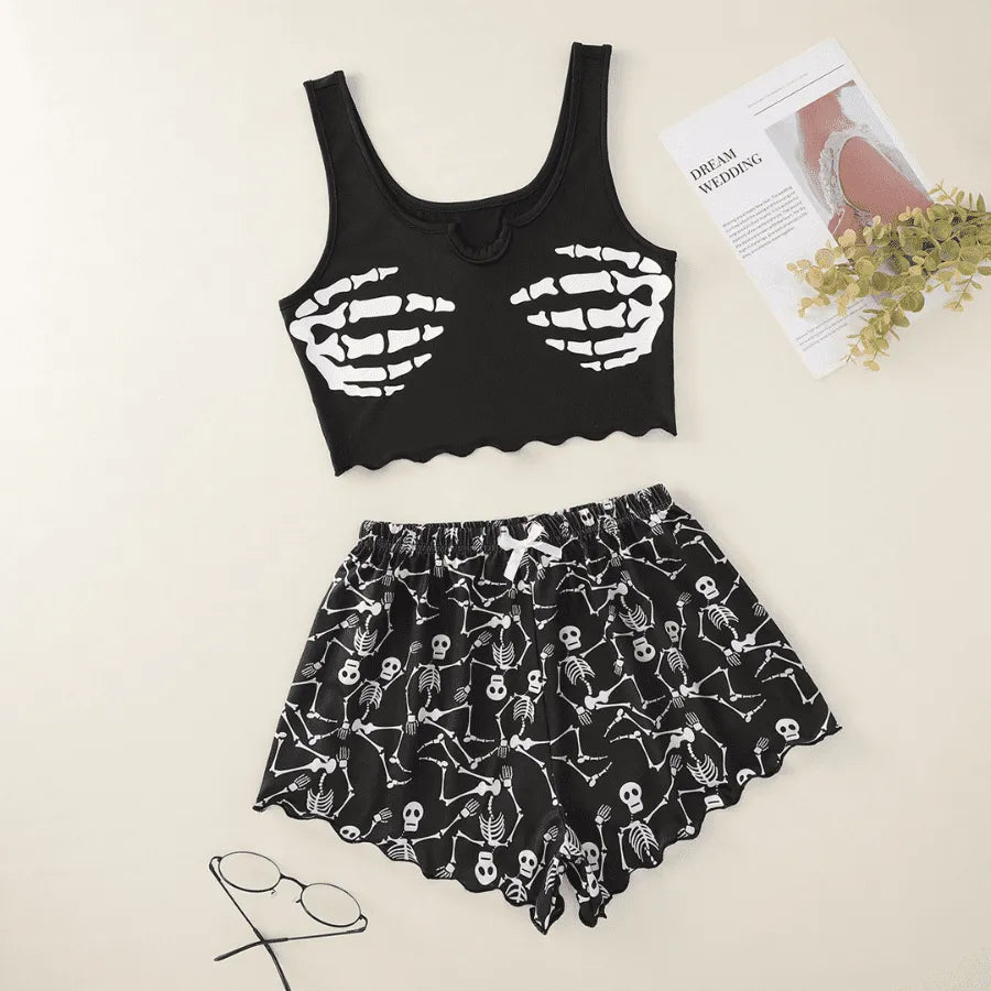 Pijama Feminino Esqueleto - Conjunto Top Cropped e Shorts Fresquinho LooseFit | Tecido Super Macio e Confortável