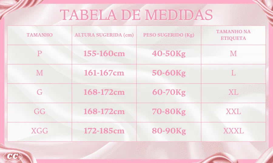 Tabela de Tamanhos - Pijama Feminino Hawai
