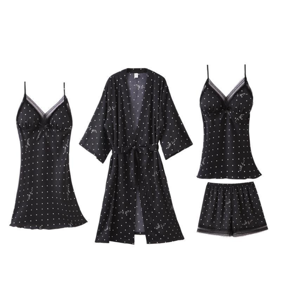 Feito com um material luxuoso de poliéster e cetim, este conjunto de pijamas é macio, leve e incrivelmente confortável. O toque de seda oferece uma sensação suave contra a pele, enquanto o design estampado com bolinhas brancas adiciona um charme clássico. Disponível nas elegantes cores preta e salmão, e em quatro tamanhos diferentes, este conjunto atende a diferentes preferências e necessidades. A gola V adiciona um detalhe moderno e sensual, tornando este conjunto ideal não apenas para noites de sono mais tranquilas e aconchegantes, mas também para dias de descanso em casa. Não perca a oportunidade de melhorar sua experiência de relaxamento com este conjunto de pijamas essencial!