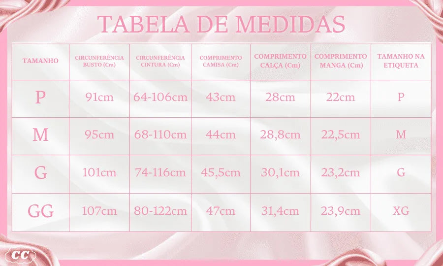 - Tamanho: De acordo com a tabela de medidas
