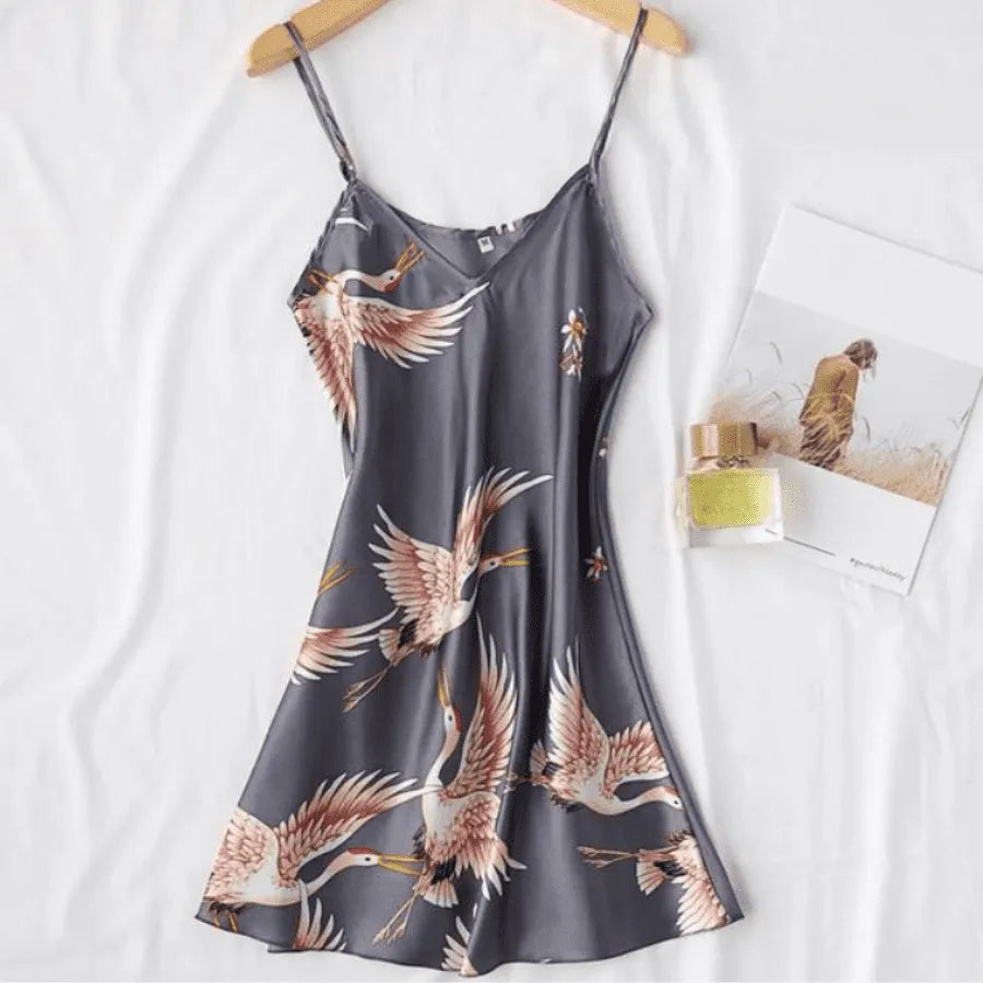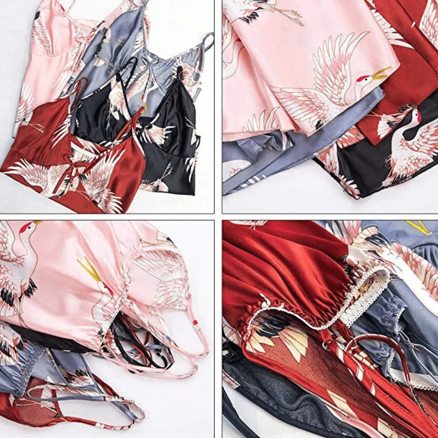 Pijama Feminino OrientalFly Conjunto Camisola e Roupão Em Seda Gelo | Toque De Seda Confortável