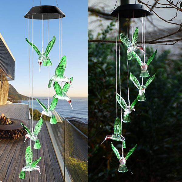 Sinos de Vento de Luz Beija-Flor Alimentada à Energia Solar