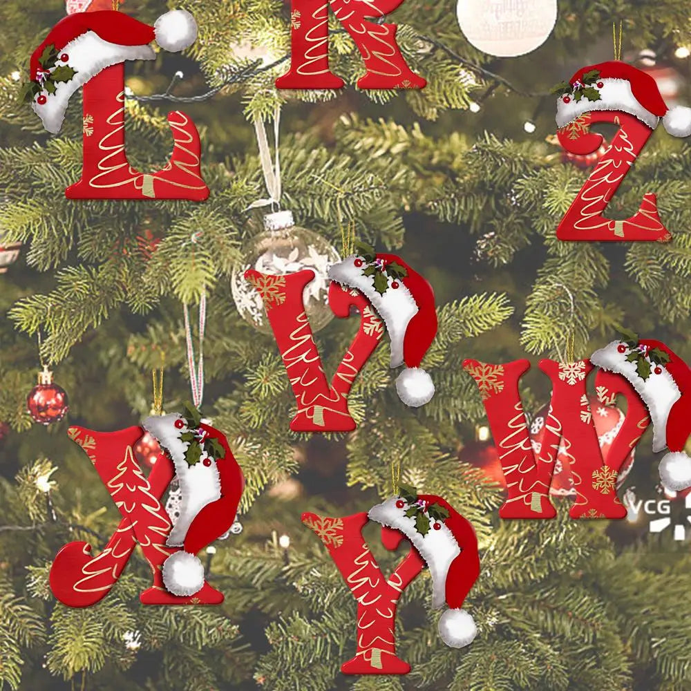 Pingente decorativo 2D, 26 letras, decoração de árvore de Natal