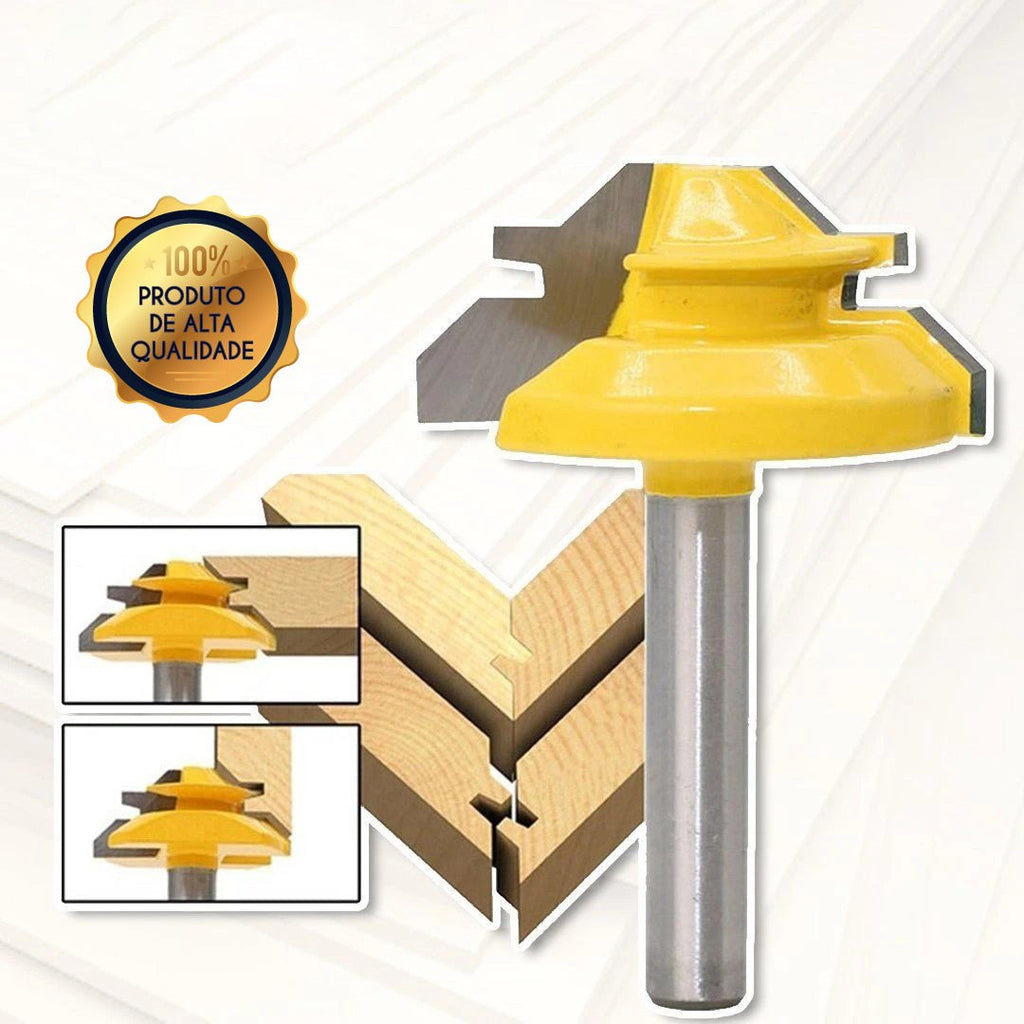 A Fresa de 45° Rouber Bit é hoje a mais procurada no mundo. Possui características únicas, como por exemplo, fazer a função macho e fêmea na mesma peça, bastando inverter a posição da madeira. Isso ajudará você a produzir juntas extremamente fortes.