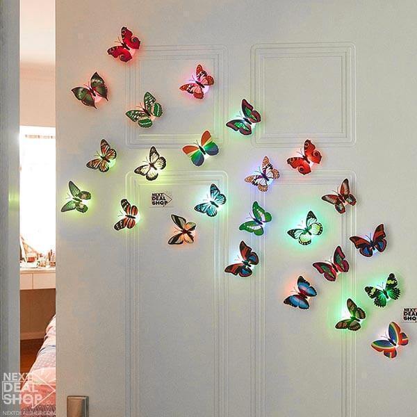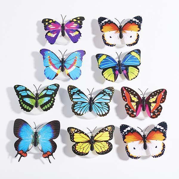 Kit 10 Borboletas Coloridas Mágicas que Grudam de LED