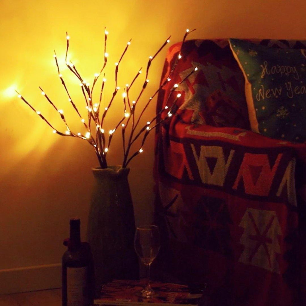 Kit com 10 Galhos de Salgueiro e 40 LEDs Quentes Decorativos de Casa