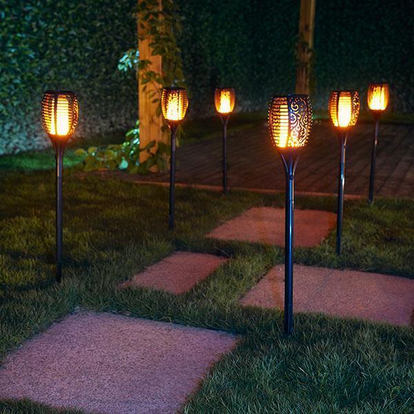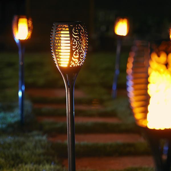 Adicione uma elegante sensação vintage ao seu jardim com estas lâmpadas de tocha de chama movidas a energia solar! Elas emitem uma luz suave e quente que imita uma chama real, mas sem o incômodo dos riscos de incêndio. Cubra seus caminhos ou limites de jardim com elas para criar uma aparência dramática e impressionar seus visitantes!