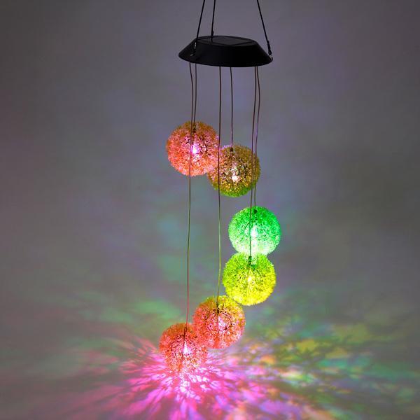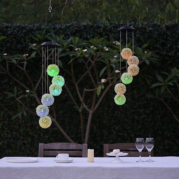 Dê nova vida a seu jardim de noite com esta luz LED pendurada de **dente-de-leão**! Com um design exclusivo e divertido de sinos de vento, ele adicionará um toque glamoroso à sua varanda, pátio ou em qualquer lugar que você quiser pendurá-lo. Movido à **energia solar** e ecológico, só precisa do sol para ficar aceso. Assista à mudança de cores no escuro!