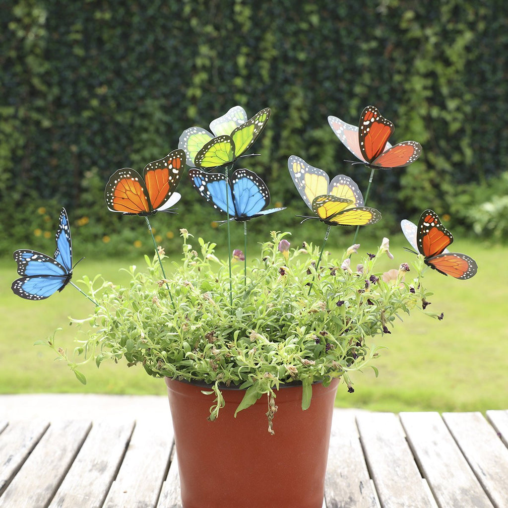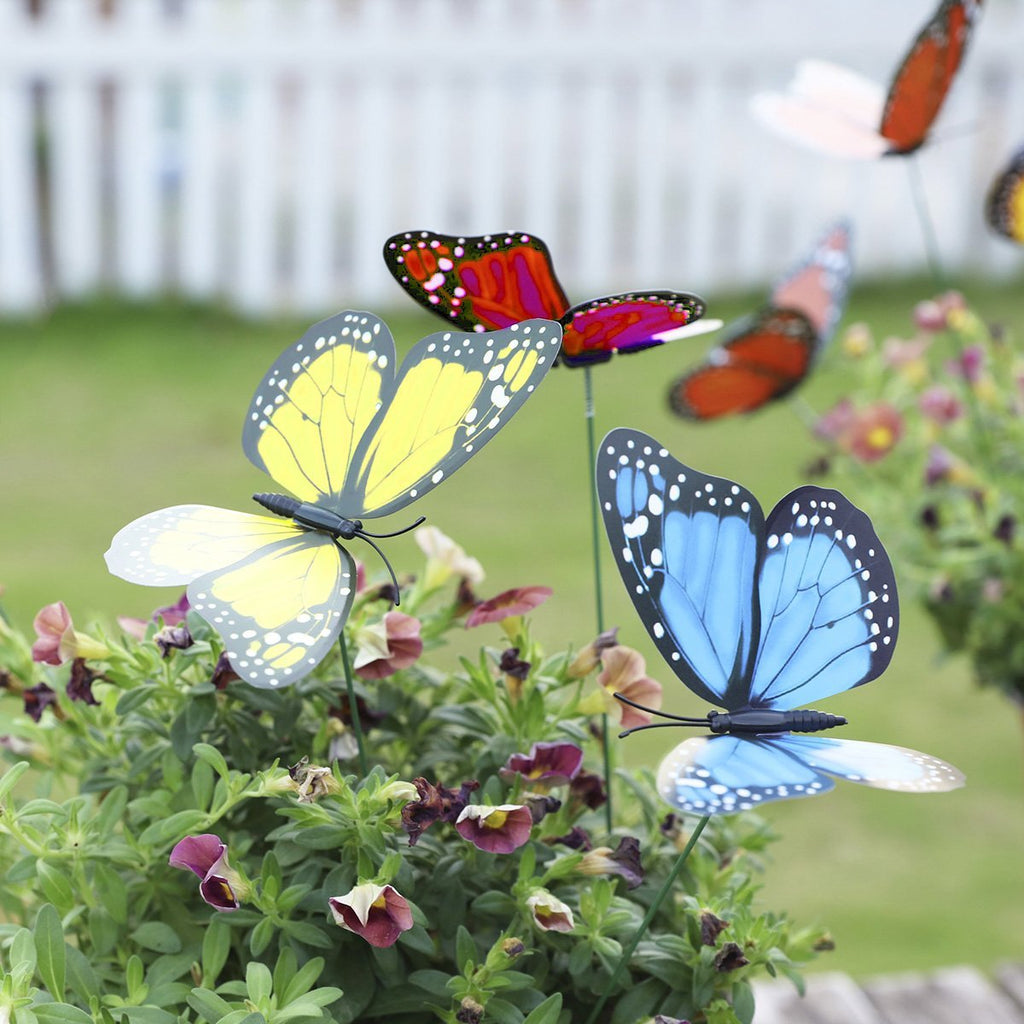 Tenha estas vibrantes borboletas no seu quintal. Adicione-as aos seus canteiros de flores ou até mesmo vasos de plantas para uma explosão de cor! Faça com que pareça a estação das borboletas durante todo o ano!