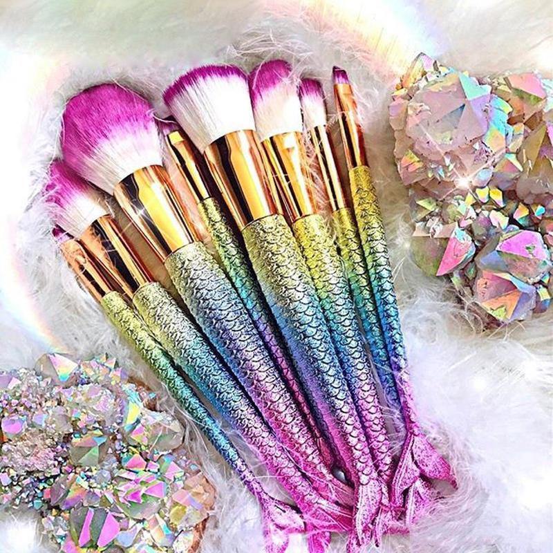 Kit de Pincéis para Maquiagem Sereia - 10 Peças