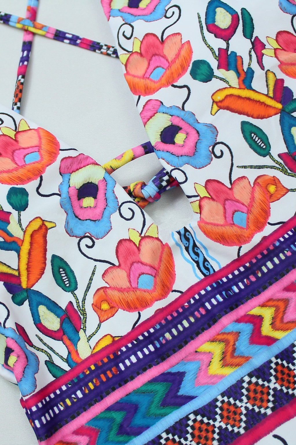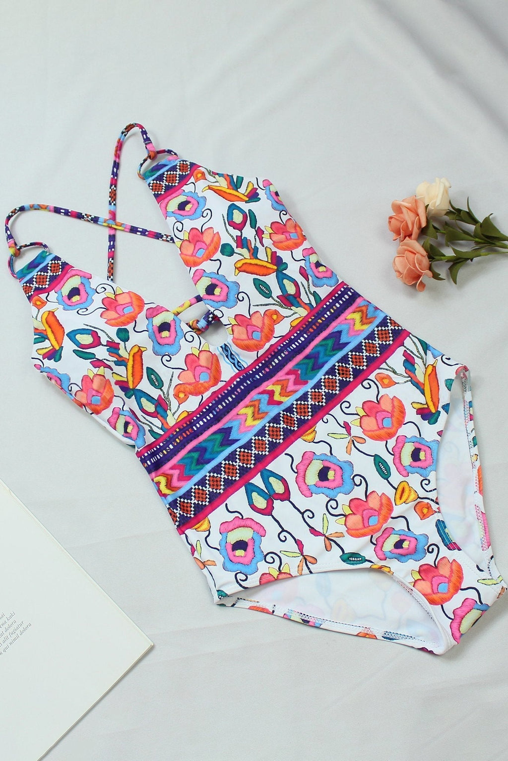 Entre na vibe do verão com esse maiô floral. Seu design e sua estampa chamam a atenção de qualquer pessoa. O decote em V profundo cria uma silhueta sexy na medida certa. Use com sandálias e uma saída de praia para um look glamuroso na praia ou na piscina.