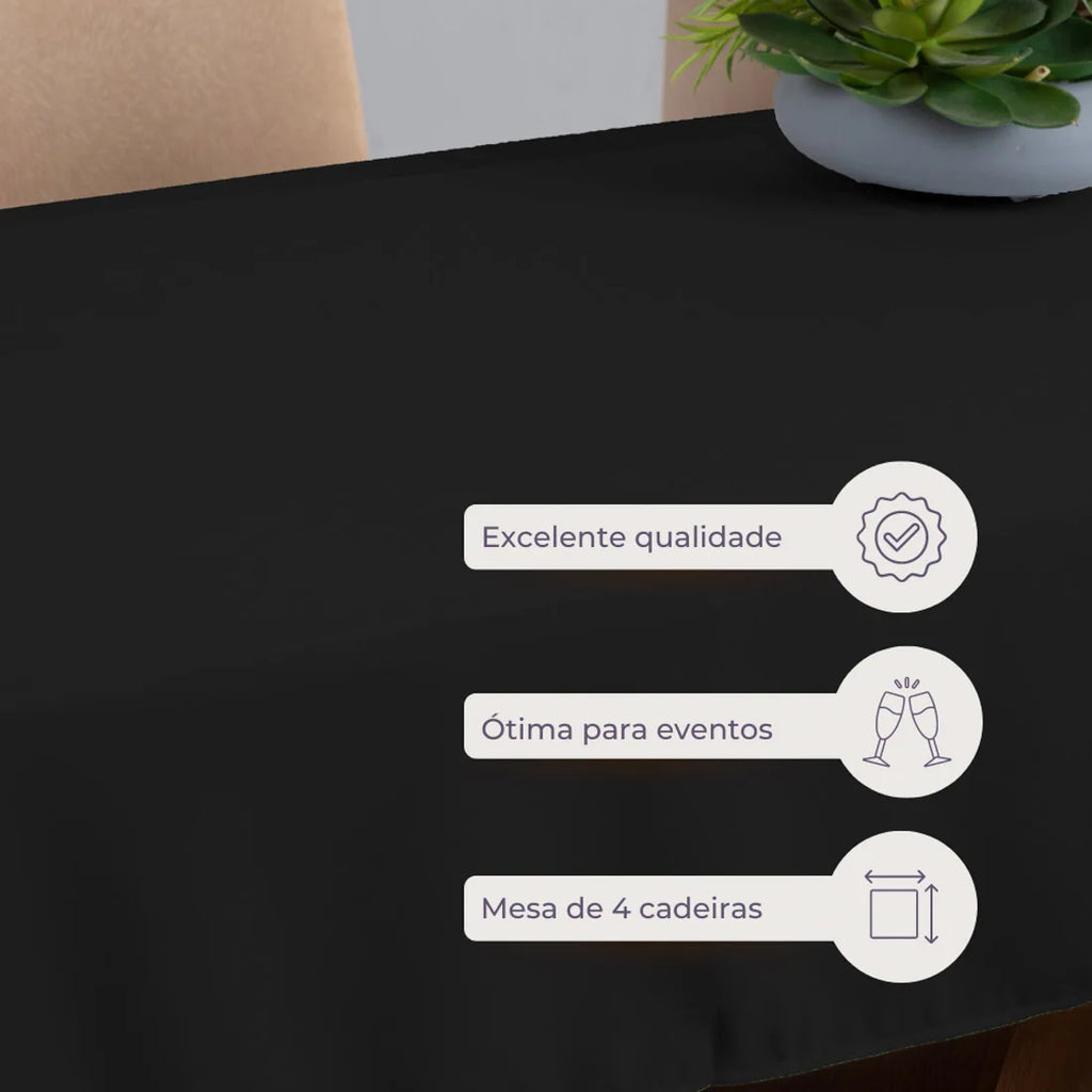 - Tamanho Ideal: Desenvolvida para mesas de 4 lugares, com medidas de 1,45m de comprimento por 1,40m de largura.