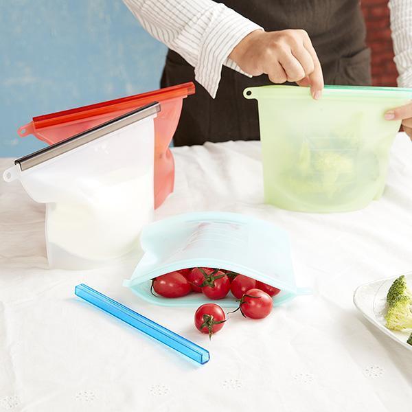 4 Peças de Saco de Armazenamento de Alimentos de Silicone Reutilizável