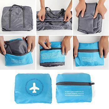 Este pequeno saco dobrável começa com um tamanho minúsculo, mas quando você o dobra, ele é preenchido com o tamanho de uma bolsa de mão. Você pode levar com você em uma viagem e quando sua mala começar a encher de lembrancinhas, você pode jogar suas roupas sujas nesta bolsa como bagagem de mão.