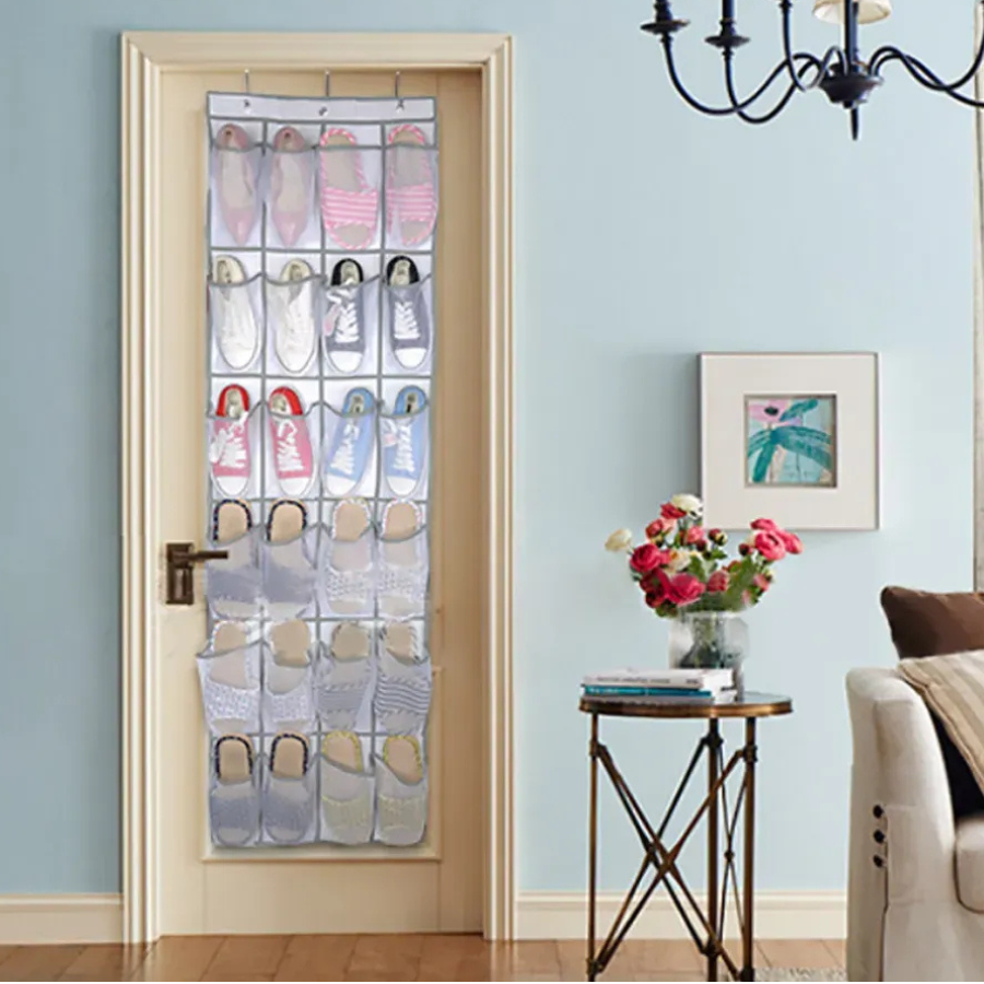 Sapateira Organizadora de Sapatos com 24 Bolsos e 3 Ganchos para Pendurar Sobre a Porta