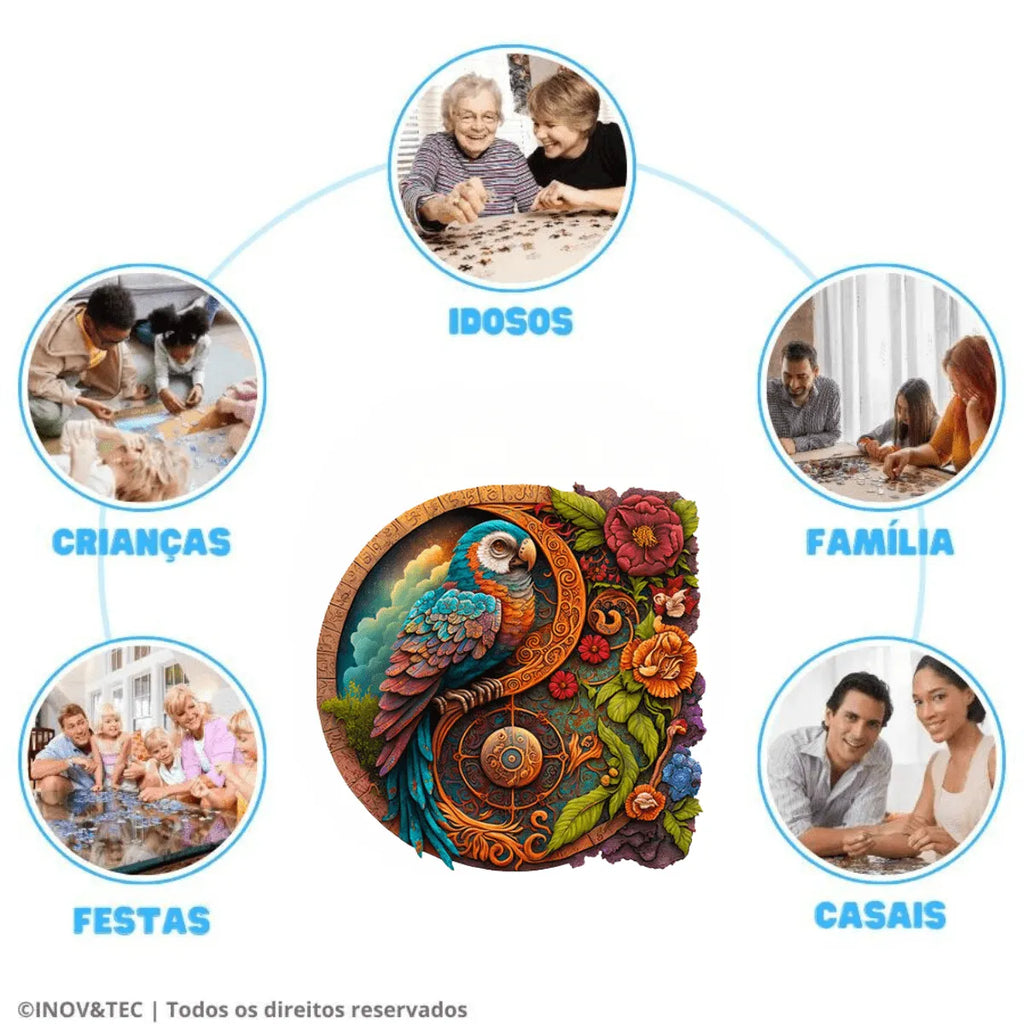 As peças são feitas de madeira de alta qualidade, cortadas a laser para garantir encaixes perfeitos e formatos únicos. Cada quebra-cabeça é uma obra de arte decorativa, perfeita para exibir em sua casa ou presentear alguém especial.