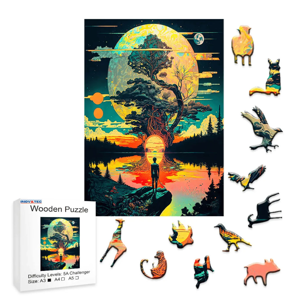 Quebra-Cabeça de Madeira Inova WOOD PUZZLE - Árvore Divina | Diversão com Diversos Benefícios para Crianças e Idosos