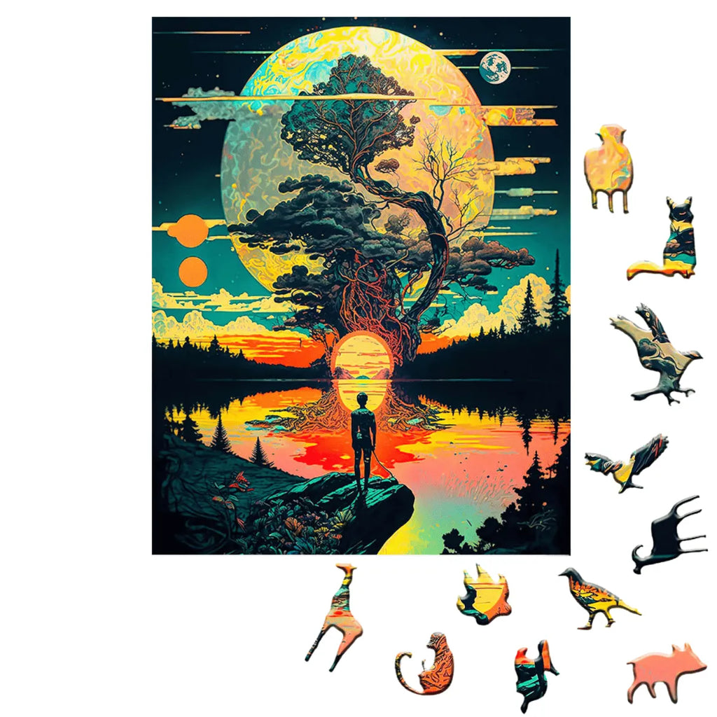 As peças são feitas de madeira de alta qualidade, cortadas a laser para garantir encaixes perfeitos e formatos únicos. Cada quebra-cabeça é uma obra de arte decorativa, perfeita para exibir em sua casa ou presentear alguém especial.
