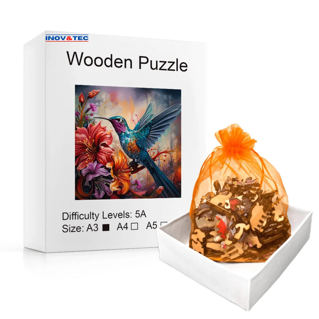 Quebra-Cabeça de Madeira Inova WOOD PUZZLE - Beija-flor da Floresta | Diversão com Diversos Benefícios