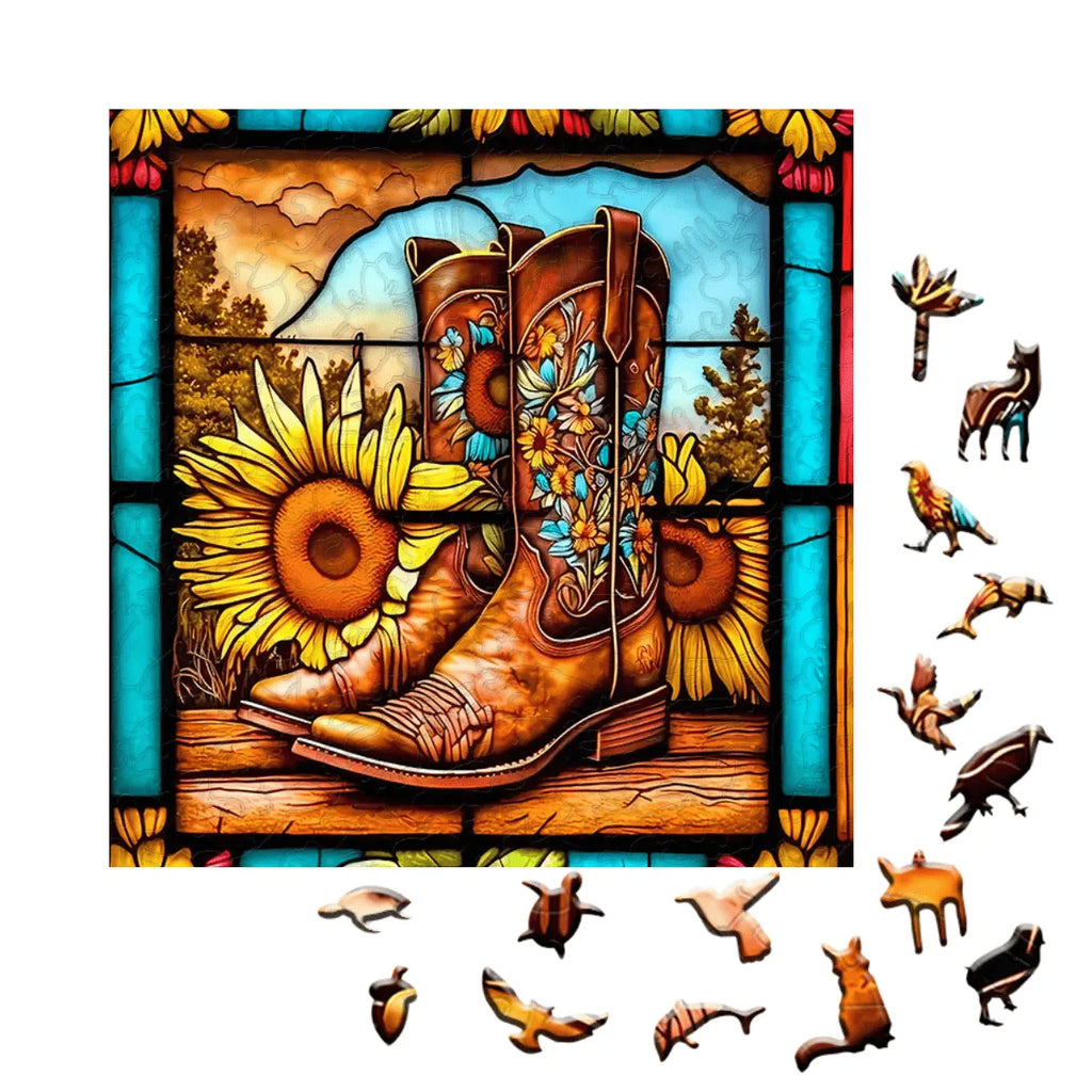 Quebra-Cabeça de Madeira Inova WOOD PUZZLE - Botina e Girassóis | Diversão com Diversos Benefícios para Crianças e Idosos