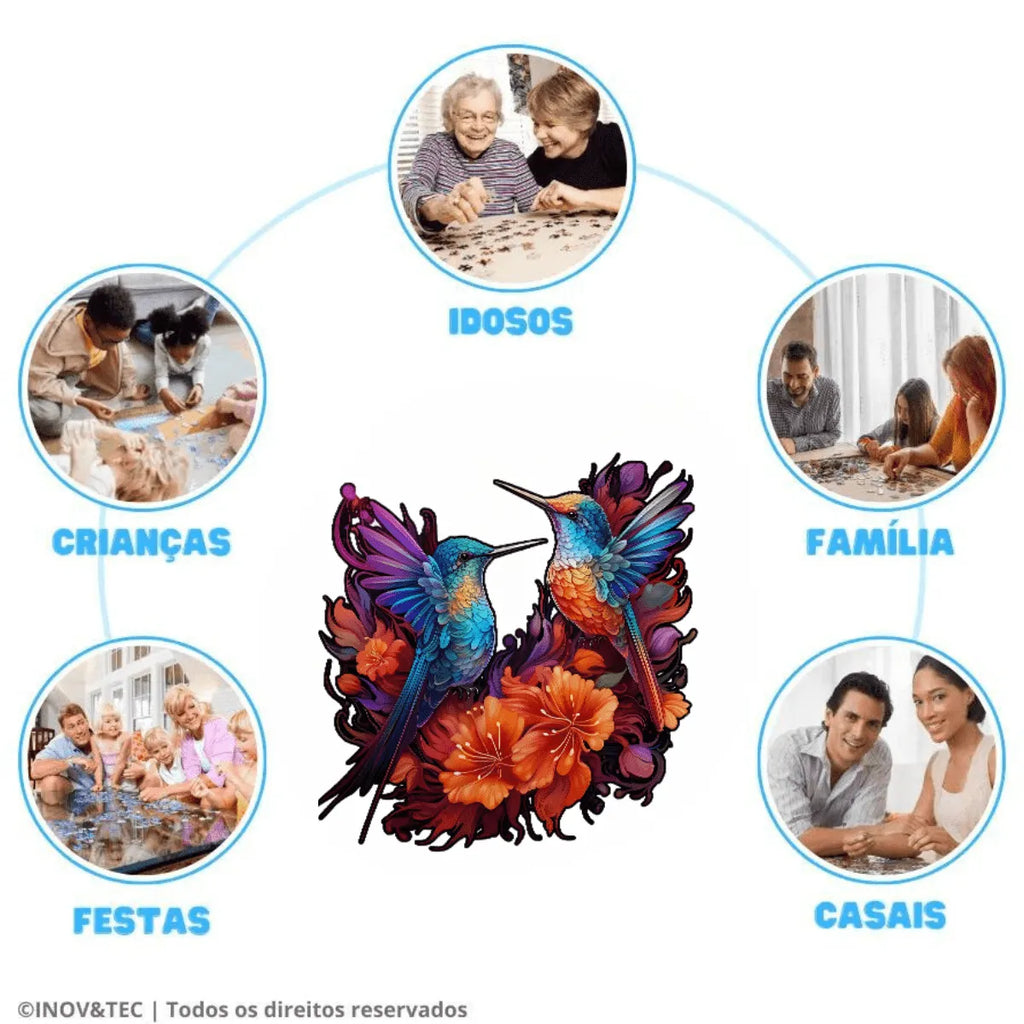 As peças são feitas de madeira de alta qualidade, cortadas a laser para garantir encaixes perfeitos e formatos únicos. Cada quebra-cabeça é uma obra de arte decorativa, ideal para exibir em sua casa ou presentear alguém especial.