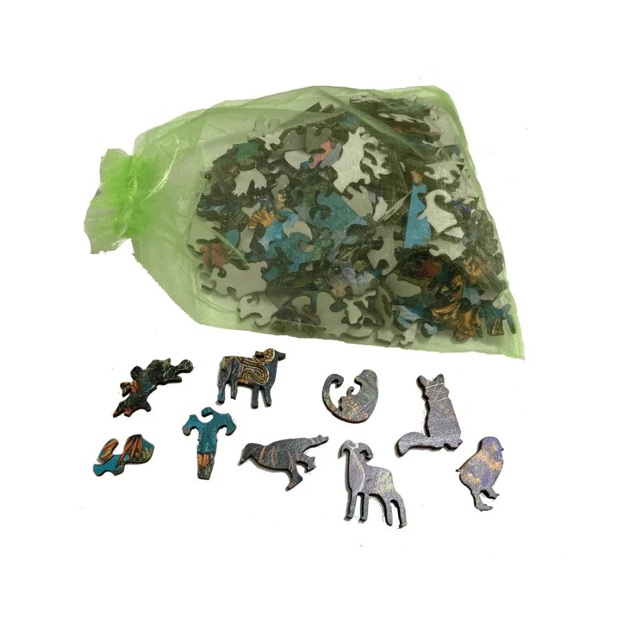 As peças são feitas de madeira de alta qualidade, cortadas a laser para garantir encaixes perfeitos e formatos únicos. Cada quebra-cabeça é uma obra de arte decorativa, perfeita para exibir em sua casa ou presentear alguém especial.