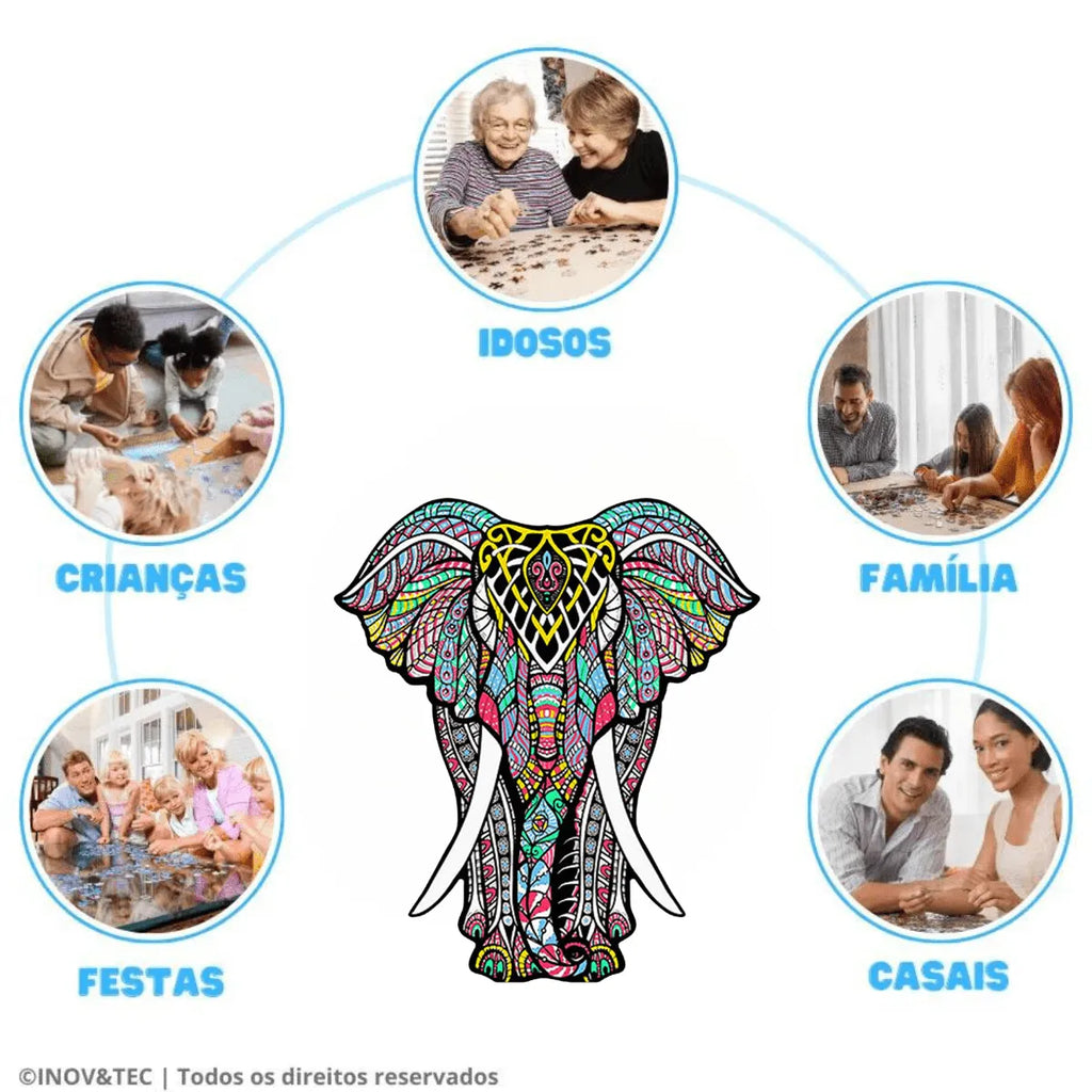Quebra-Cabeça de Madeira Inova WOOD PUZZLE - Elefante Psicodélico
