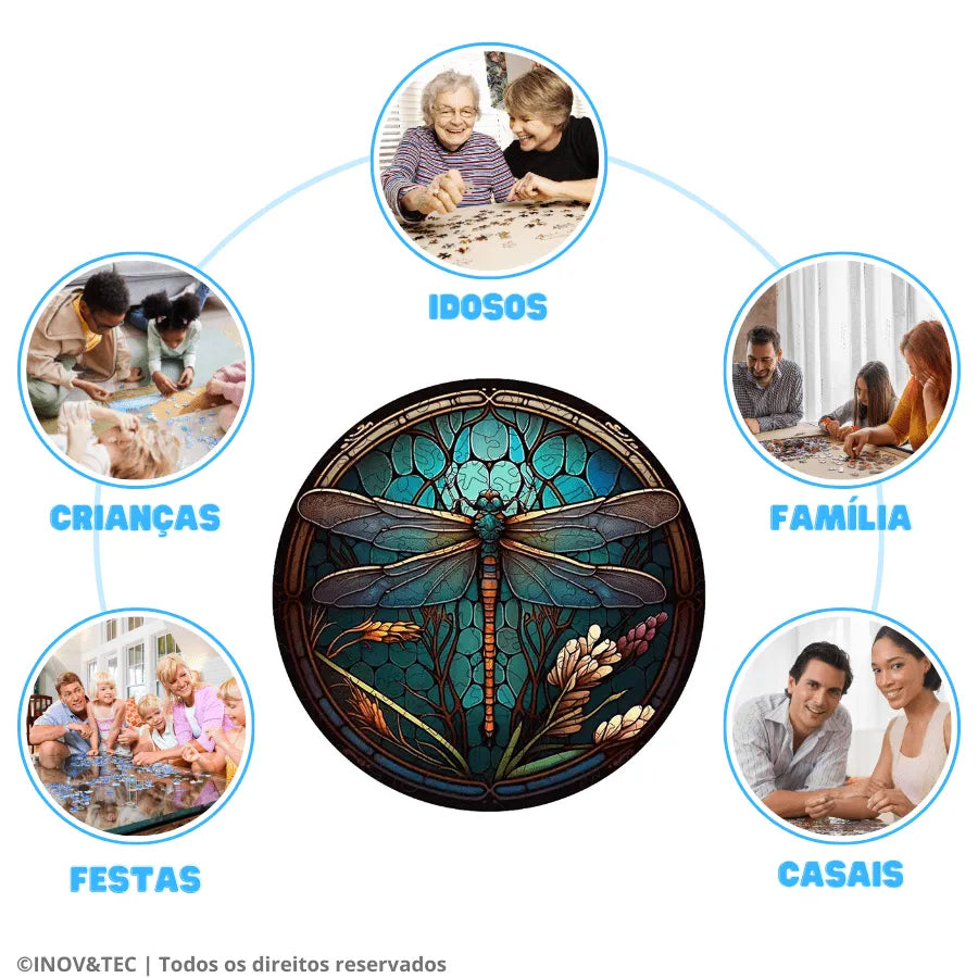 Quebra-Cabeça De Madeira Inova WOOD PUZZLE - Libélula Mandala | Diversão Com Diversos Benefícios Para Crianças e Idosos