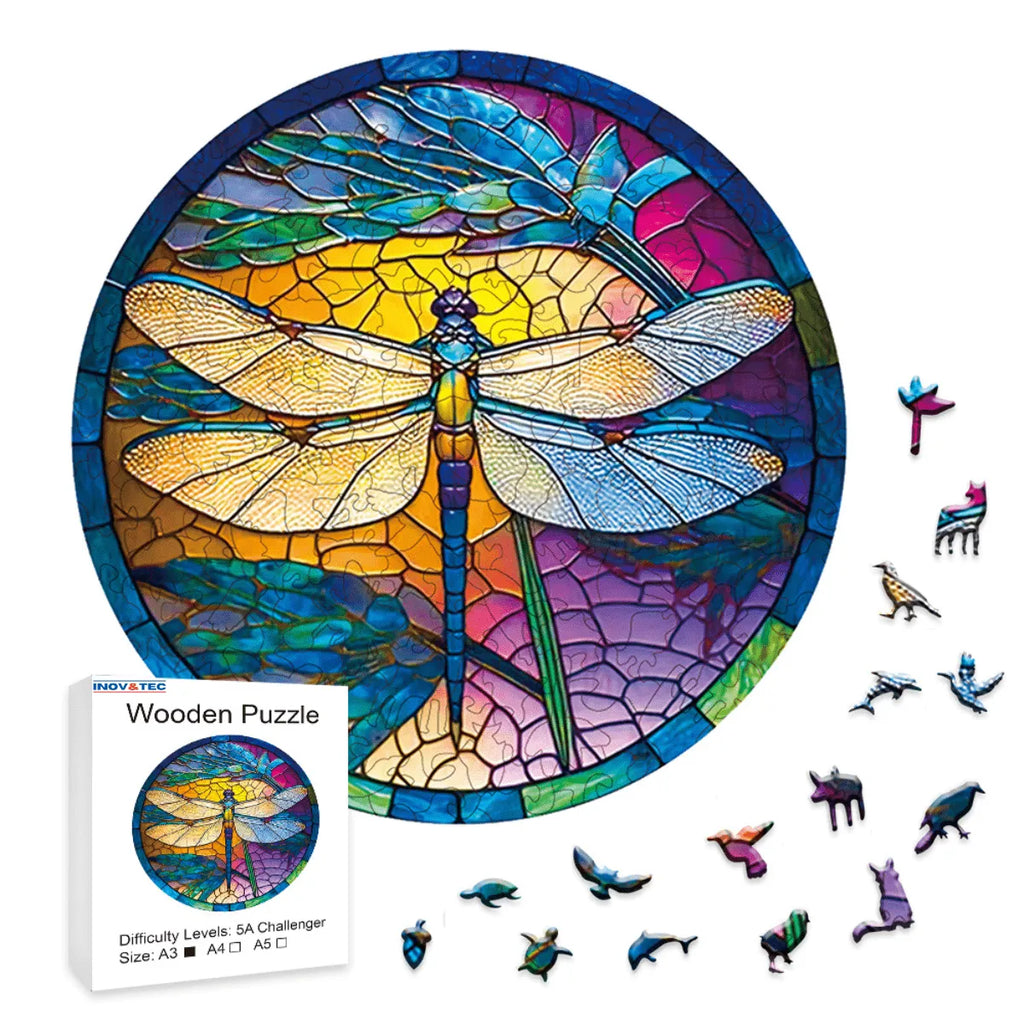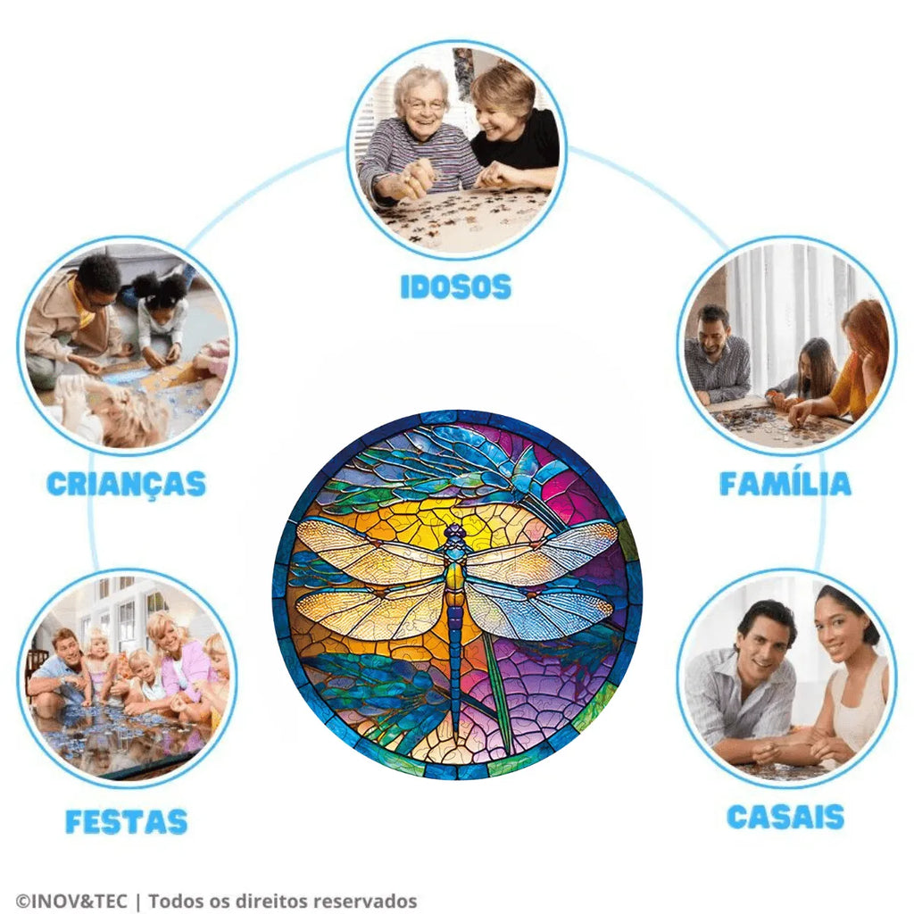 Quebra-Cabeça de Madeira Inova WOOD PUZZLE - Libélula Pôr do Sol | Diversão com Diversos Benefícios para Crianças e Idosos