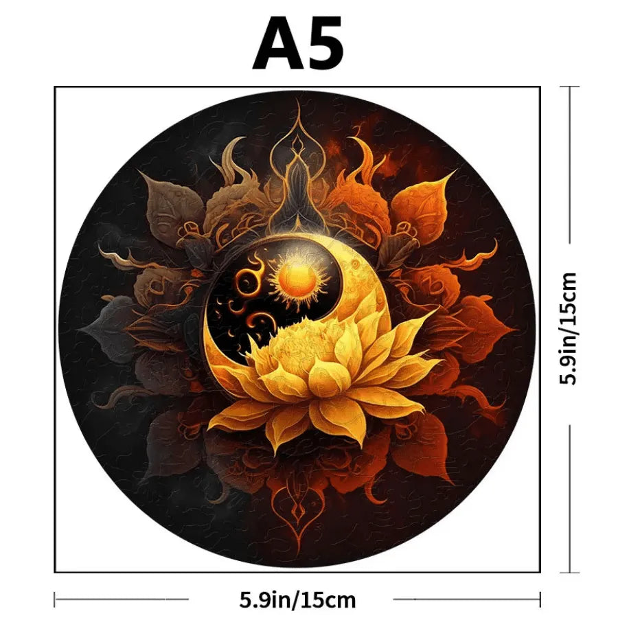 Quebra-Cabeça De Madeira Inova WOOD PUZZLE - Lua e Flor de Lótus | Diversão Com Diversos Benefícios Para Crianças e Idosos
