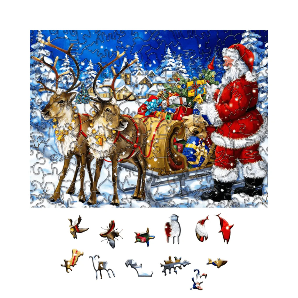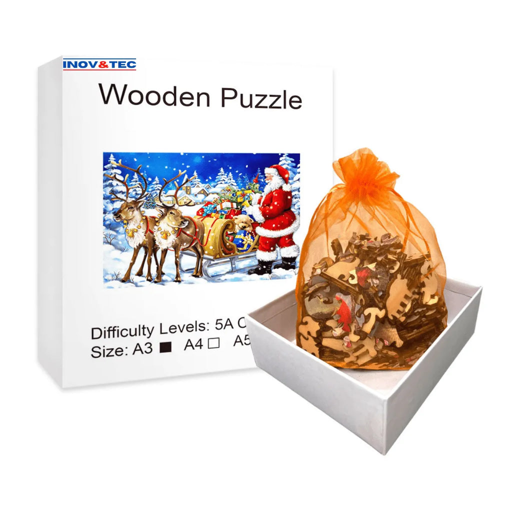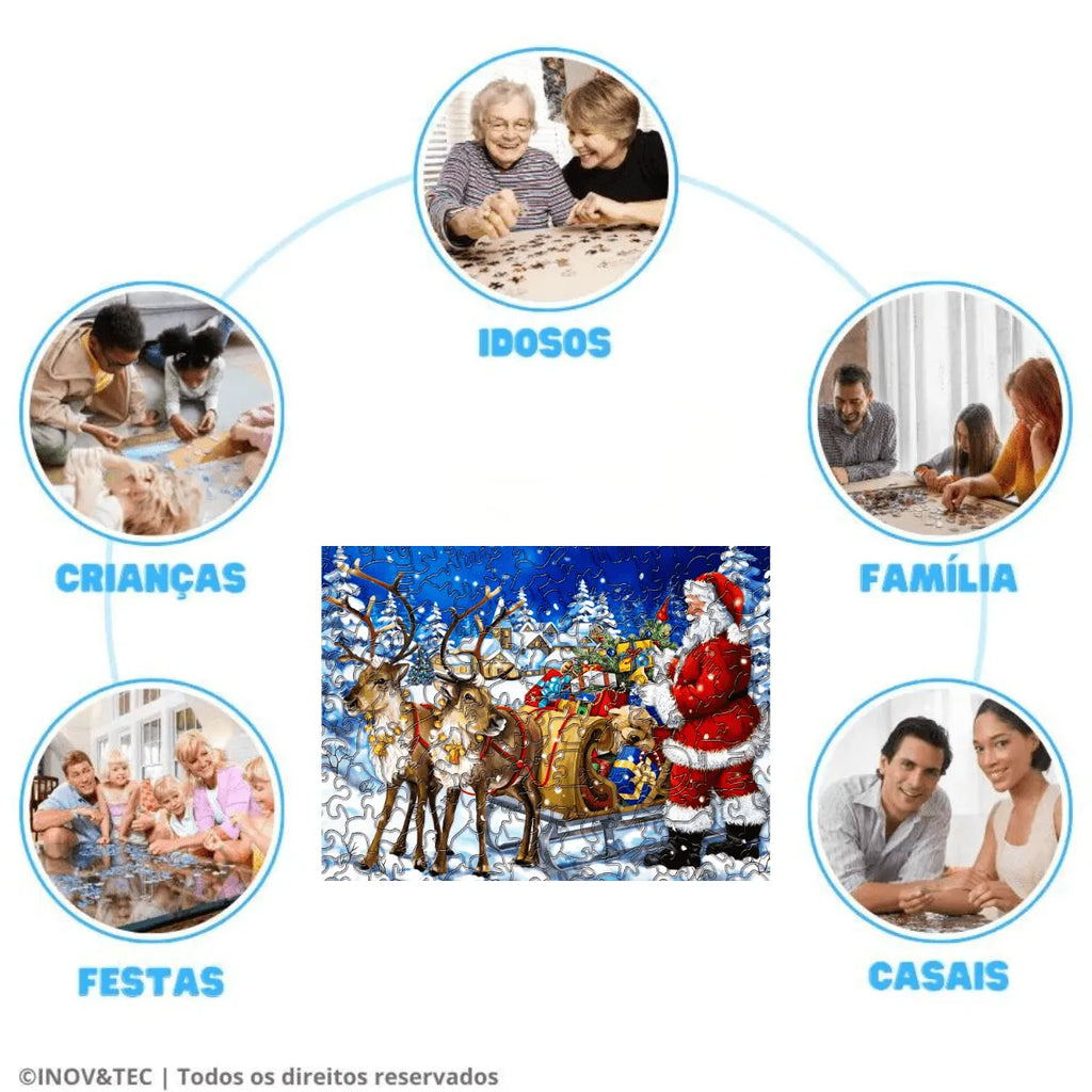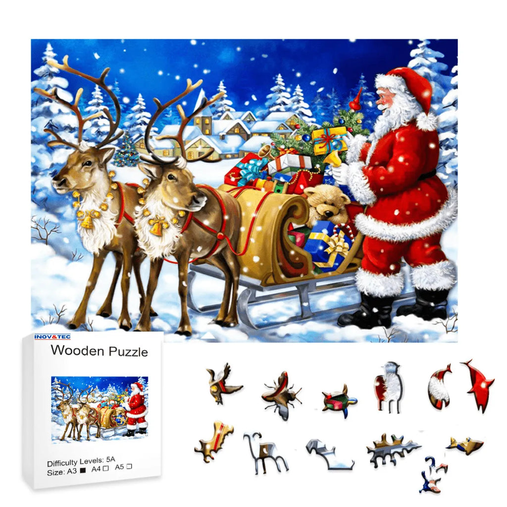 Quebra-Cabeça de Madeira Inova WOOD PUZZLE - Noel e sua Charrete | Diversão com Diversos Benefícios para Crianças e Idosos