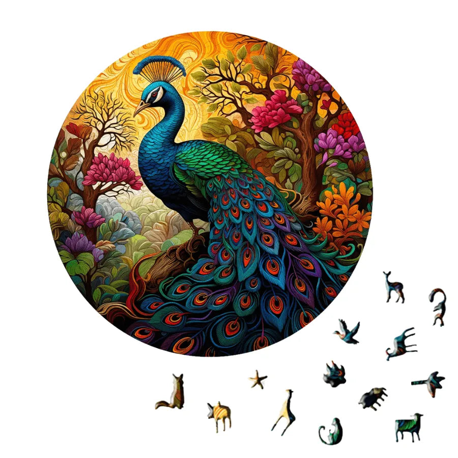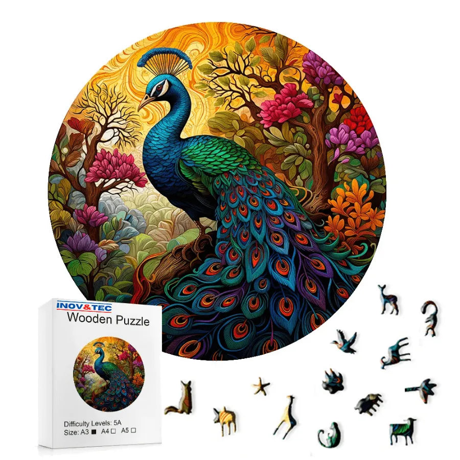 Quebra-Cabeça De Madeira Inova WOOD PUZZLE - Pavão Rei Na Floresta Encantada | Diversão Com Diversos Benefícios Para Crianças e Idosos