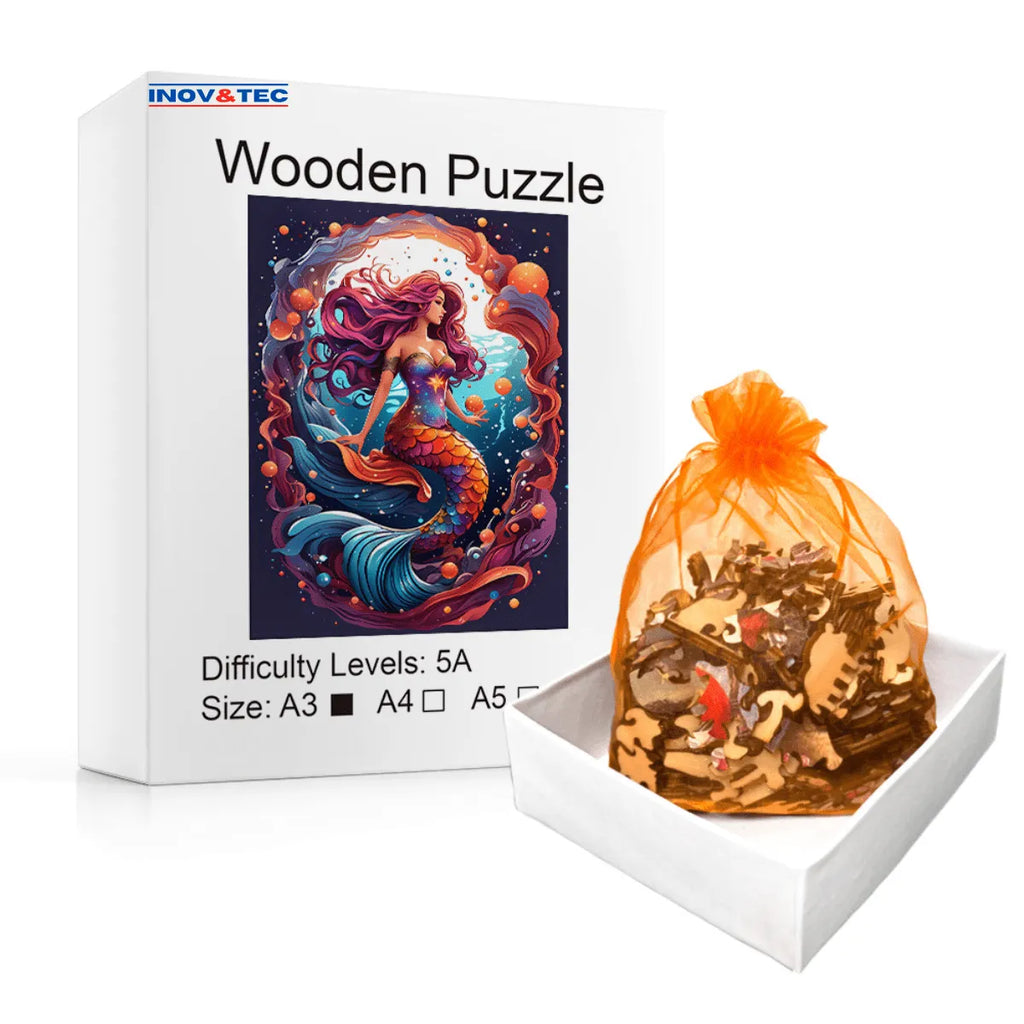 Quebra-Cabeça de Madeira Inova WOOD PUZZLE - Sereia no Mar | Diversão com Diversos Benefícios