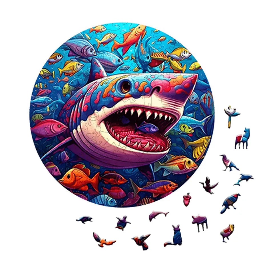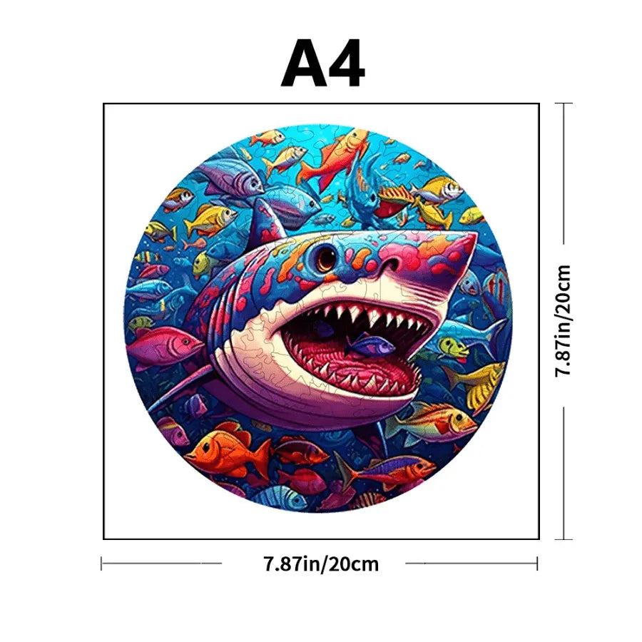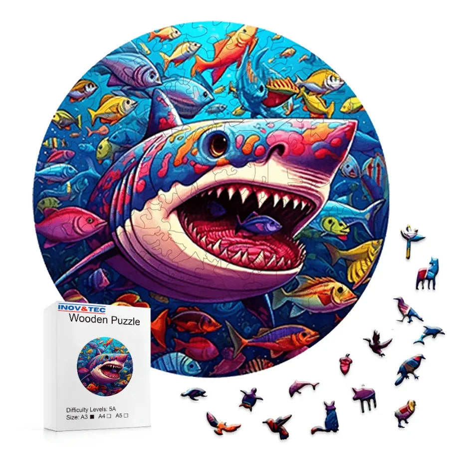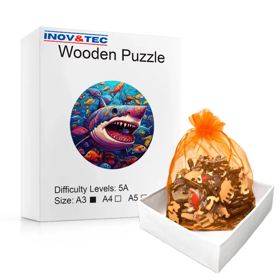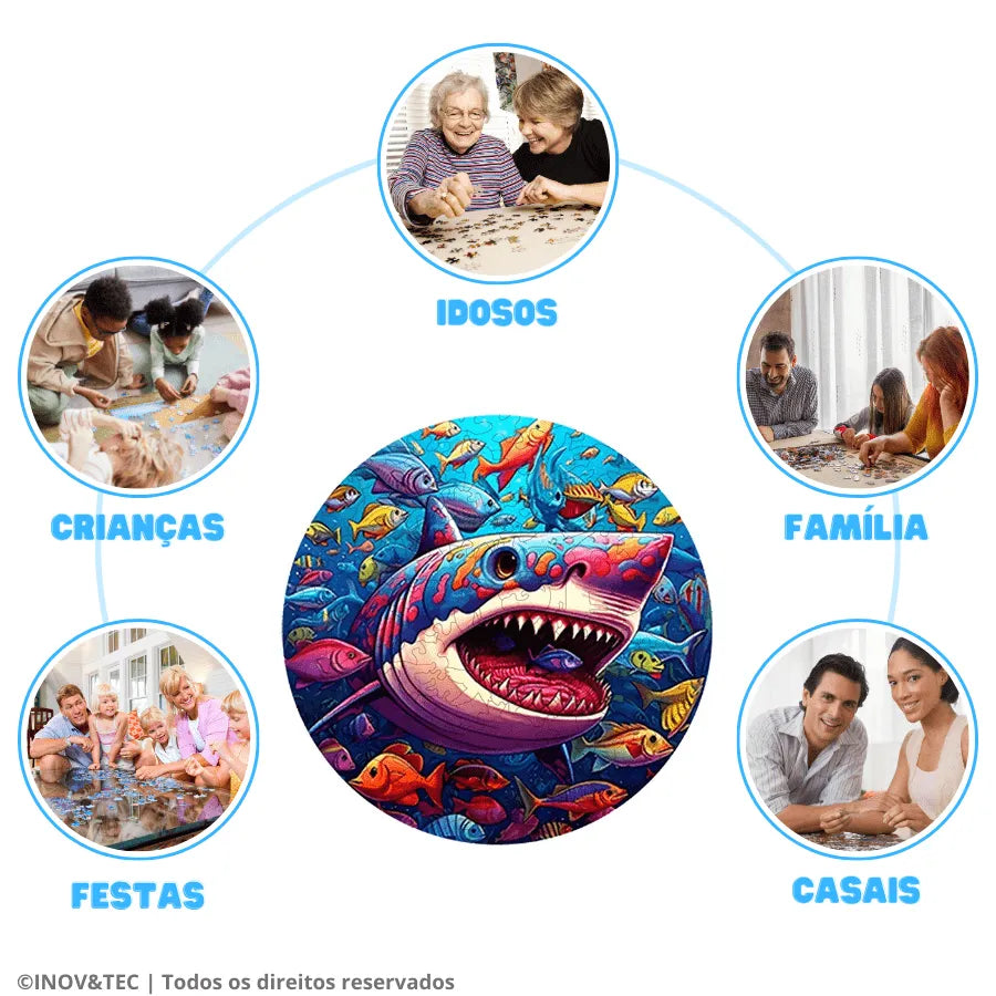 Quebra-Cabeça De Madeira Inova WOOD PUZZLE - Tubarão Com Peixes | Diversão Com Diversos Benefícios Para Crianças e Idosos