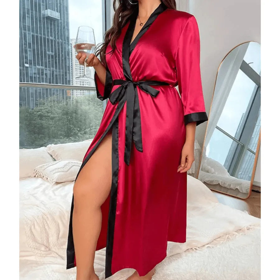 Roupão Pijama Feminino CozyChic Quimono Plus Size Em Cetim Premium Com Decote V | Toque De Seda Confortável