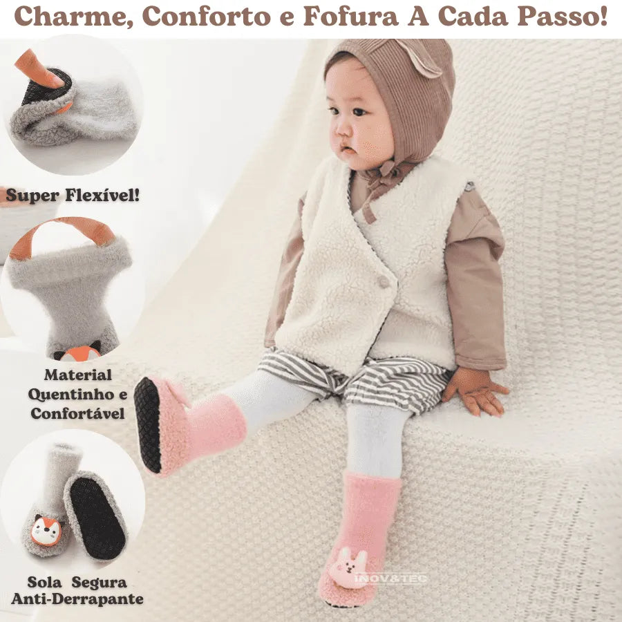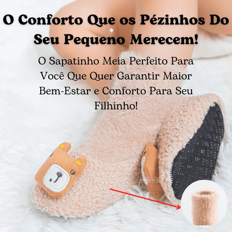 Sapatinho Meia de Inverno "Pezinho Pelúcia": Conforto e Fofura Para o Seu Bebê!