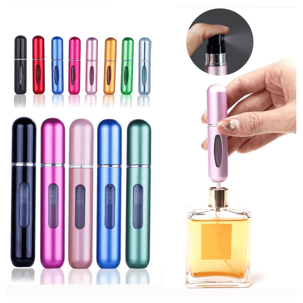 • 8ml e 5ml de **perfume atomizadores**. Tamanho acessível e peso leve, fácil de transportar.